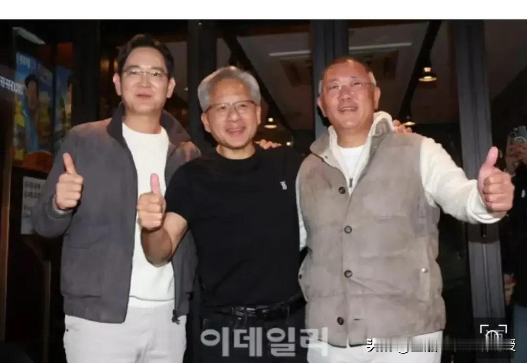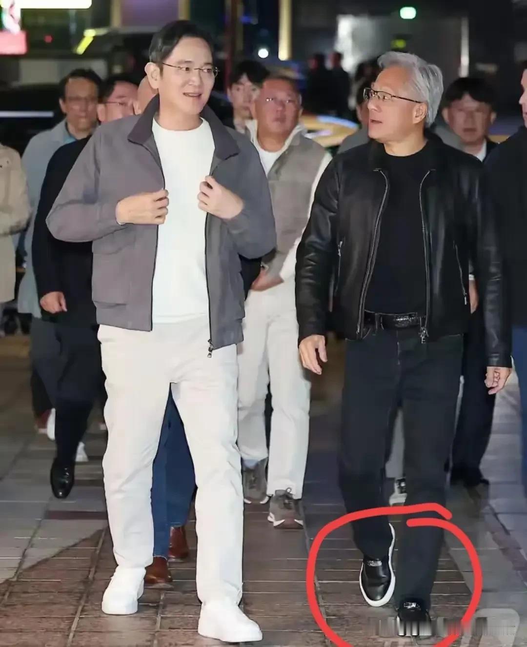 1800亿美元身价,全球排在富豪榜第八位的超级富豪黄仁勋,到韩国参加活动后吃饭,竟然和身价119亿美元身价的三星电子会长李在镕,35亿美元身价的现代汽车集团会长郑义宣一起在首尔一家名为“Kkanbu Chicken”的炸鸡店吃炸鸡、喝啤酒,这个店还是黄仁勋亲自选的,就是个普通小店,连包间都没有。黄仁勋说自己就想体验一下韩国的炸鸡啤酒文化。 去年年底,黄仁勋到访越南,和越南总理一起在大排档吃猪杂粥等当地美食,还在河内酒吧喝啤酒。 黄仁勋脚上仍然是那双黑色旧休闲鞋,全身都是黑色,跟李在镕的一身白色着装形成鲜明反差。 黄仁勋确实是个懂美食的人,他从来不讲排场,只喜欢世界各地的“苍蝇小馆”,因为在这些小饭馆才能吃上正宗的当地风味。