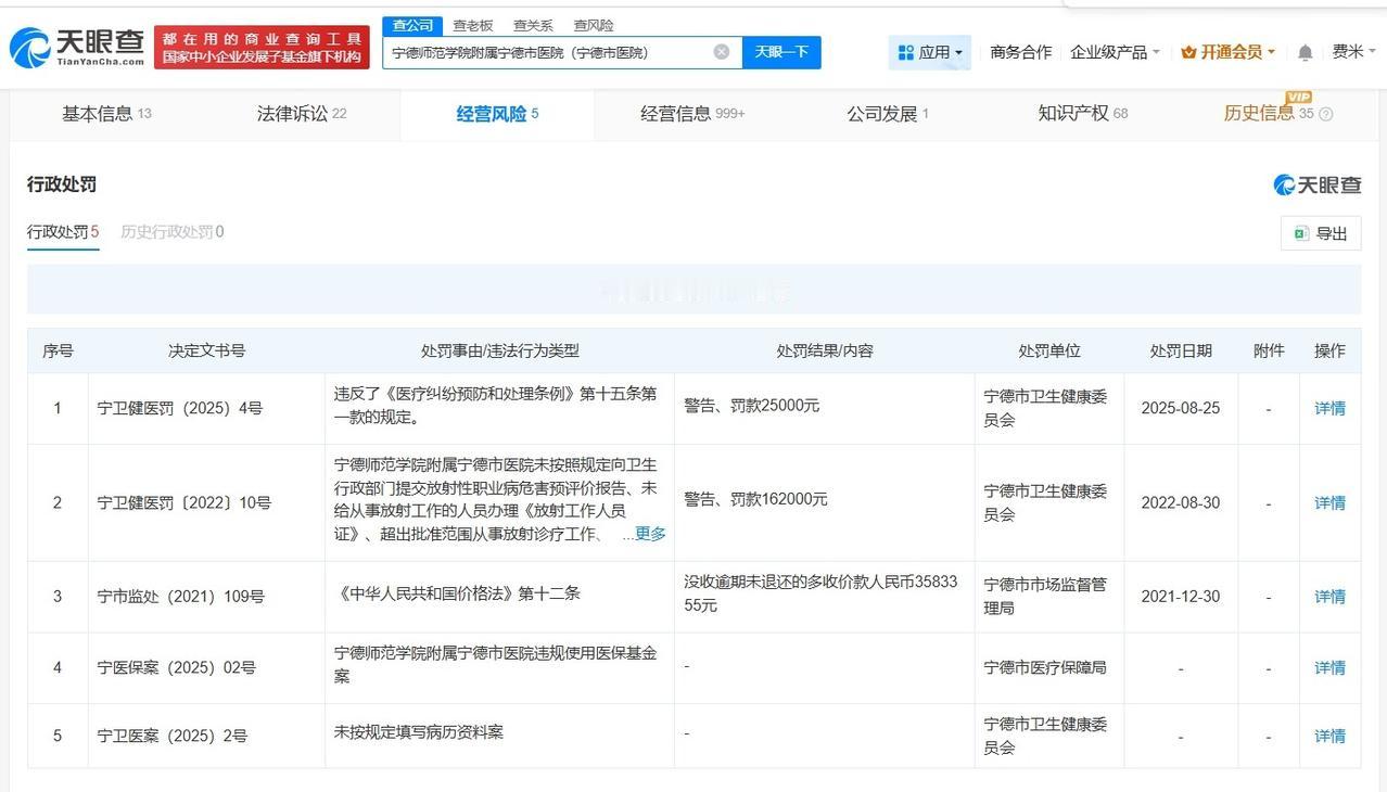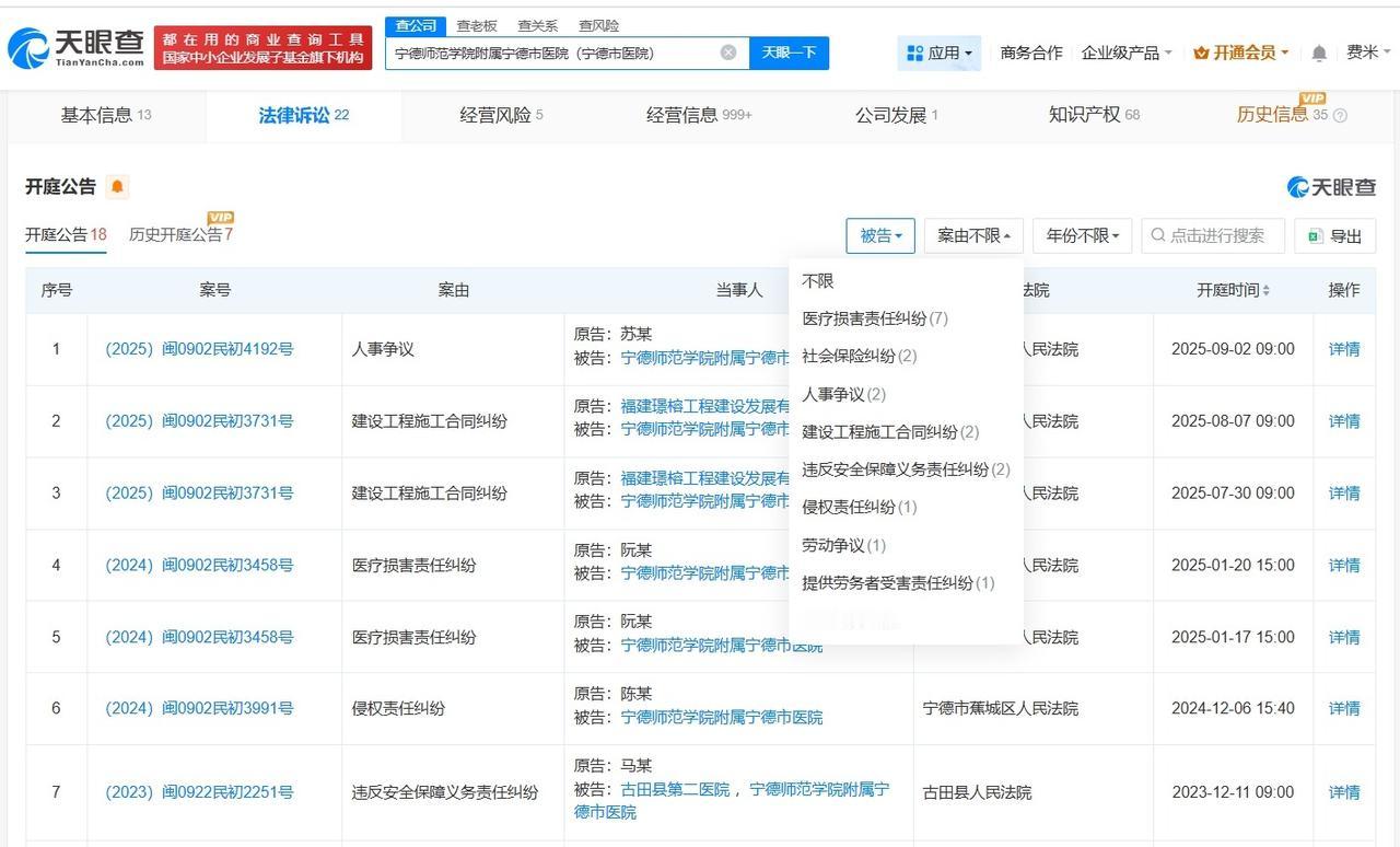揭秘新生儿转运时从推车坠落涉事医院 宁德市医院曾因医疗损害责任纠纷被起诉 宁德市医院近期违规被罚新生儿转运时从推车坠落 据媒体报道,10月30日,宁德市民林先生反映称,其妻子在宁德师范学院附属宁德市医院完成分娩后,在与新生儿一同从产房转送至病房的途中,疑因推车护栏未锁紧,新生儿从推车上坠落,致右顶骨骨折。院方回应,事件正在进一步调查中,待调查工作完成、结果明确后,会给出正式回复。 天眼查App显示,涉事医院宁德师范学院附属宁德市医院(宁德市医院)法定代表人为吴光辉,开办资金约5.3亿人民币,宗旨和业务范围为医疗护理、预防保健、临床教学、医学人才培养、科学研究、医疗咨询等。法律诉讼信息显示,该医院曾多次因医疗损害责任纠纷被起诉。经营风险信息显示,今年8月,该医院因未按规定填写病历资料的违法行为,被宁德市卫生健康委员会罚款2.5万元。 天眼查信息: