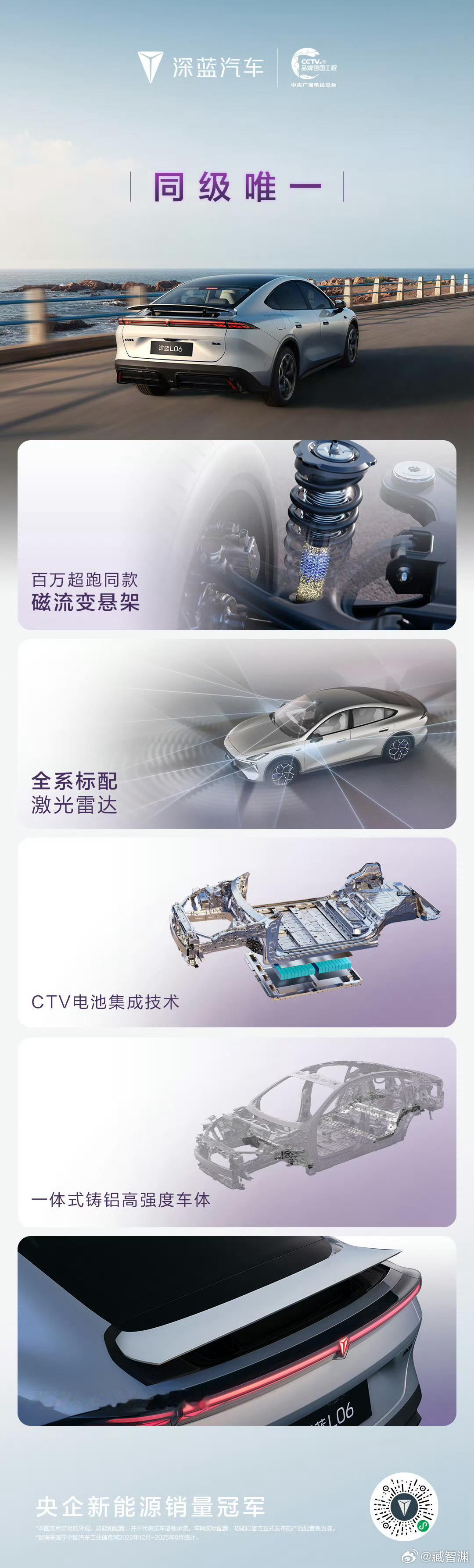 深蓝L06,预售价13.99万起。用的磁流变避震器的优势就是响应快,电流变化到阻