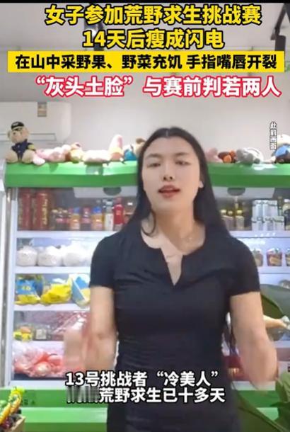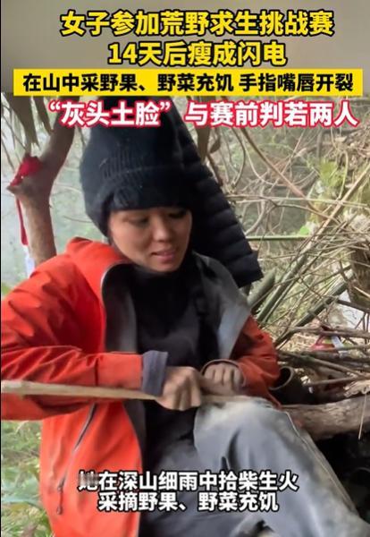 为了钱连命都不要了,该说这女人傻还是聪明?湖南一女子参加为了 20 万奖金。 她姓李,今年 42 岁,家在常德汉寿县的农村,离异后独自带 16 岁的儿子,儿子明年要考美术生,光集训费就差 3 万多,这才看到 “湘野生存挑战赛” 的报名信息。 赛事主办方在张家界武陵源边缘划了片无人区,规则很简单:100 名挑战者每人只发一把锰钢柴刀、一个急救包,最后只剩 1 人能拿 20 万奖金,中途退赛算放弃。 她是报名者里唯一的女性,出发前特意去镇上集市买了双防滑胶鞋,穿的是女儿穿过的旧冲锋衣,里面塞了两件洗得发白的保暖内衣,体重当时称是 120 斤。 头 5 天还算顺利,她在小溪边挖鱼腥草、摘野草莓,晚上找背风的岩石搭临时窝,用柴刀砍松枝铺在底下当床垫。 可从第 6 天开始下连阴雨,野菜全烂在泥里,小溪的水变浑浊,她只能把水装进急救包的塑料袋里,沉淀半天再喝,生怕有寄生虫。 第 9 天的时候,她发现手指尖裂了好几个口子,一握柴刀就渗血,嘴唇干得掉皮,连说话都觉得疼,只能捡松针煮水喝,靠里面的维生素 C 缓解点不适。 有次她看到一只野兔跑过,想追却摔在坡上,膝盖擦破了皮,没敢用急救包里的碘伏 —— 怕后面有更严重的伤要用到,就找了点止血的草药嚼烂敷上。 到第 14 天,主办方用无人机巡查拍她时,镜头里的她瘦得颧骨都突出来了,冲锋衣裹在身上空荡荡的,称重时只有 98 斤,比出发时轻了 22 斤。 她跟主办方的卫星电话报平安时,声音有点哑却笑着说 “还能扛,儿子的集训费就快有了”,没提自己晚上冻得睡不着,只能抱着柴刀缩成一团。 这段巡查视频发到网上后,网友吵得厉害,有人说 “20 万看着多,她现在一饿胃就抽疼,万一落下慢性胃炎,后续治病的钱可能比奖金还多,这不是傻吗”。 也有网友佩服她 “我表哥去了 4 天就退赛,说晚上能听到野兽叫,她一个女人扛 14 天,比好多男人都有韧劲”,还有人注意到她每天在卫星电话里记录的生存细节,已经有户外用品店找她谈赛后带货。 当地应急管理局还特意发了安全提示,说这种无专业向导的荒野挑战风险极高,引用《户外生存安全指南(2024 版)》里的数据:“无野外生存经验者单独挑战 7 天以上无人区,突发疾病、迷路的风险率超过 80%”。 现在还有 25 人在坚持,她每天早上都会先去看赛事设置的 “退赛公示牌”,看到又有人退出就偷偷乐,柴刀被她磨得锃亮,说 “再熬熬,说不定就能拿到奖金了”。 你们要是家里急着用钱,面对 20 万奖金和 14 天没热水、没饱饭的荒野挑战,会像她这样去拼一把吗?