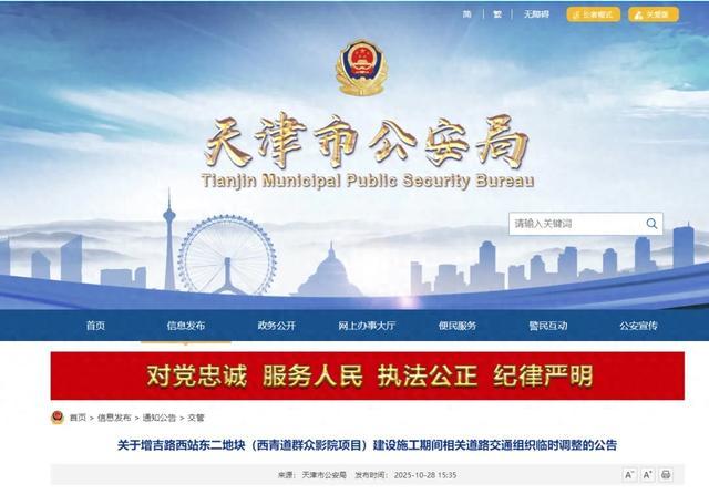 关于增吉路西站东二地块(西青道群众影院项目)建设施工期间相关道路交通组织临时调整的公告