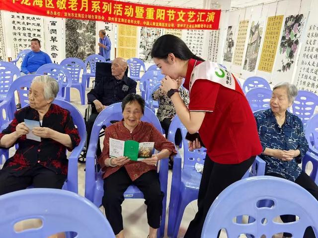 金秋送爽,丹桂飘香。在“敬老月”与重阳节双节来临之际,为弘扬中华民族尊老、敬老、爱老、助老的传统美德,中国人寿保险股份有限公司漳州市龙海区支公司(以下简称“国寿寿险龙海区支公司”)联合龙海区民政局、龙海区老年大学、龙海区计生协会,共同走进龙海和睦老年公寓,举办以“银龄沐党恩,和睦寿绵长”为主题的敬老月系列活动暨重阳节文艺汇演,为院内百余位老年朋友送上温暖关怀与节日祝福。