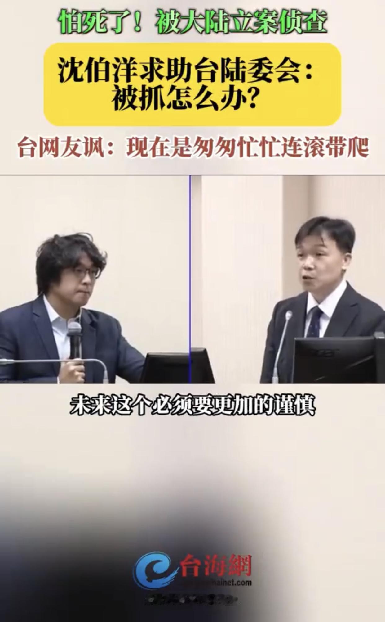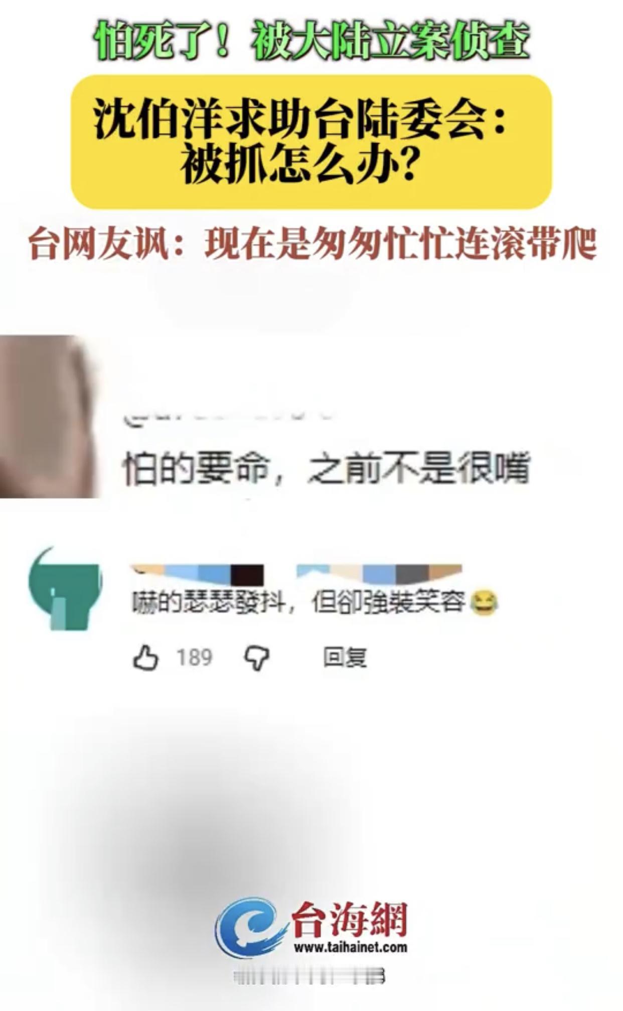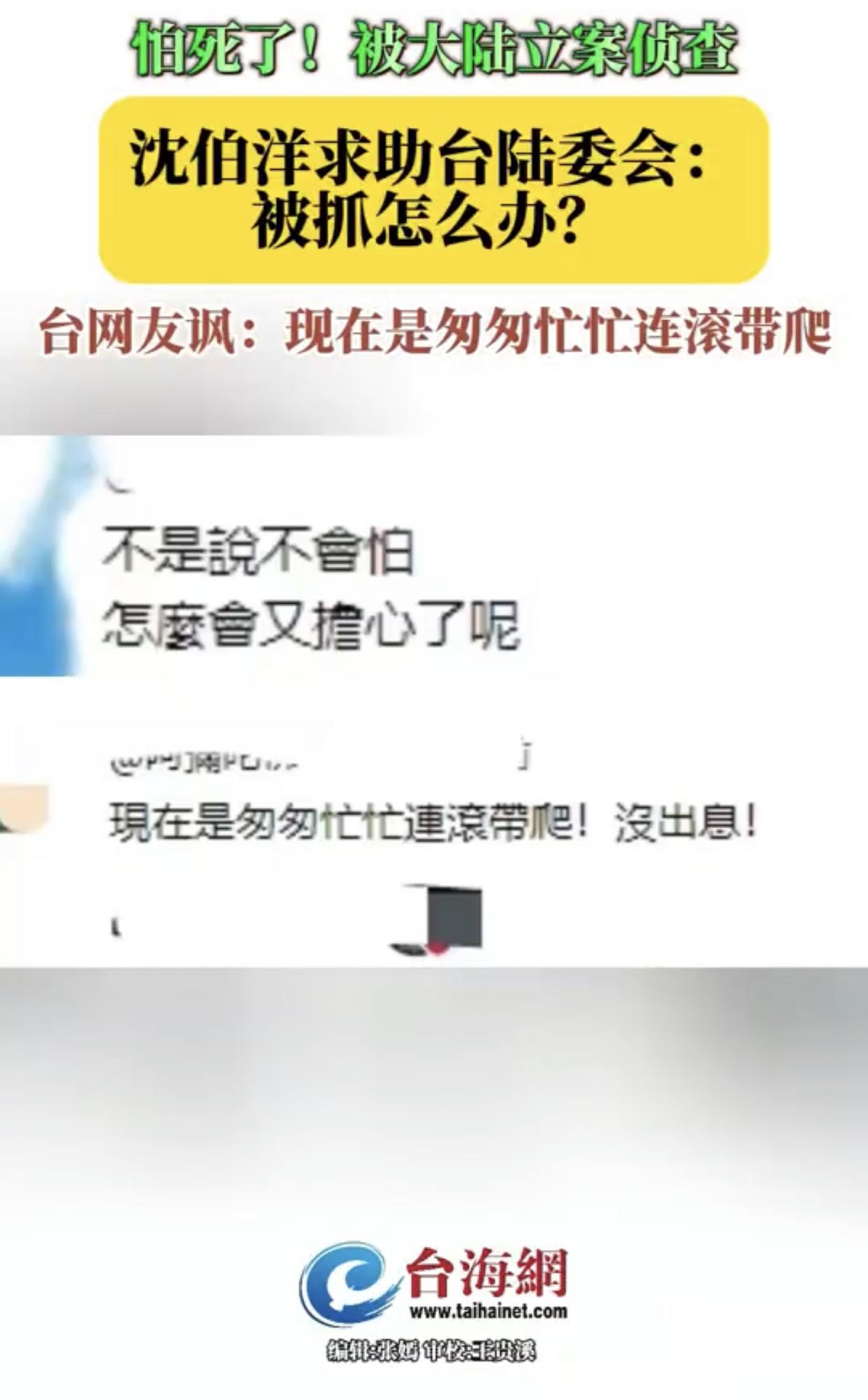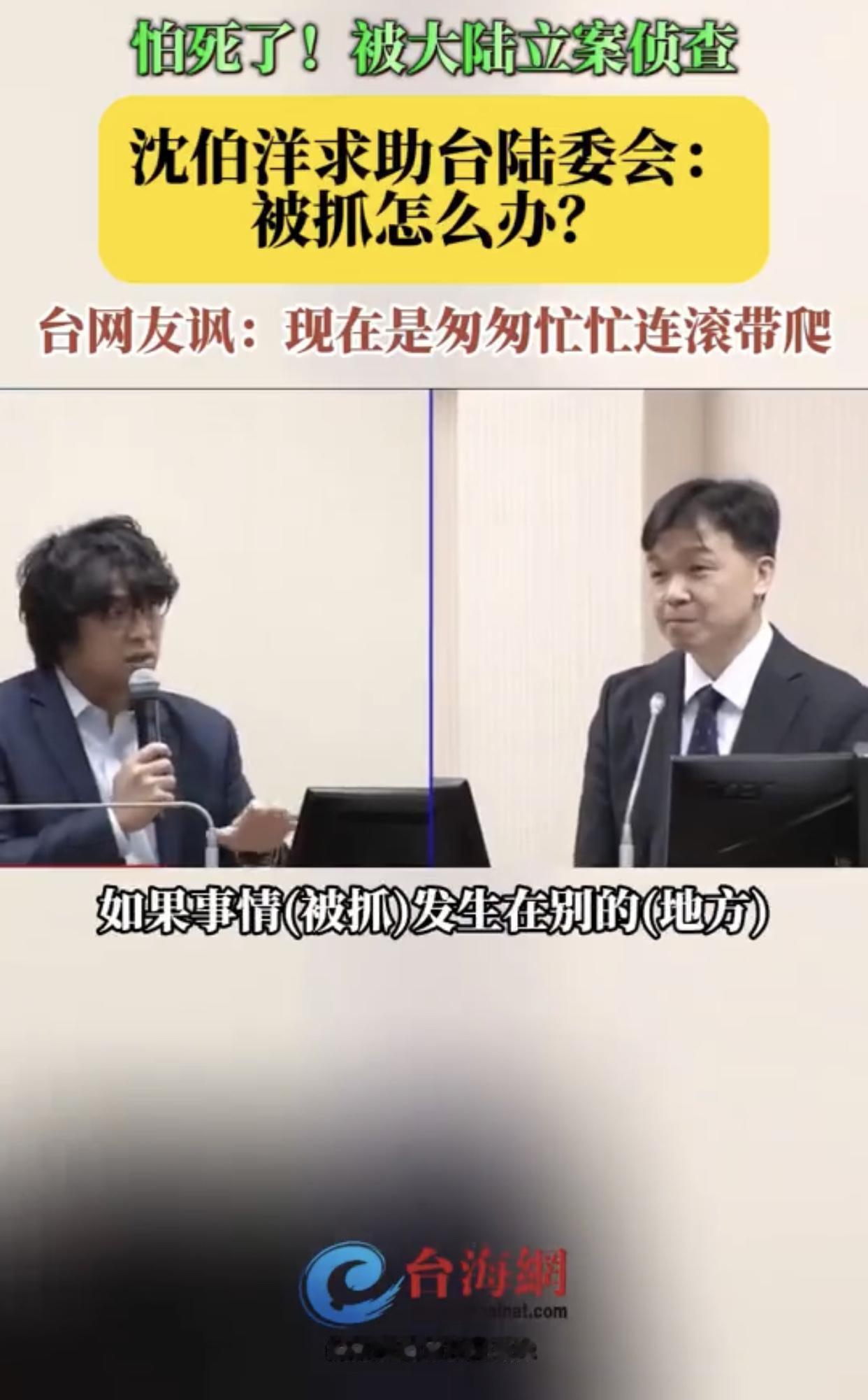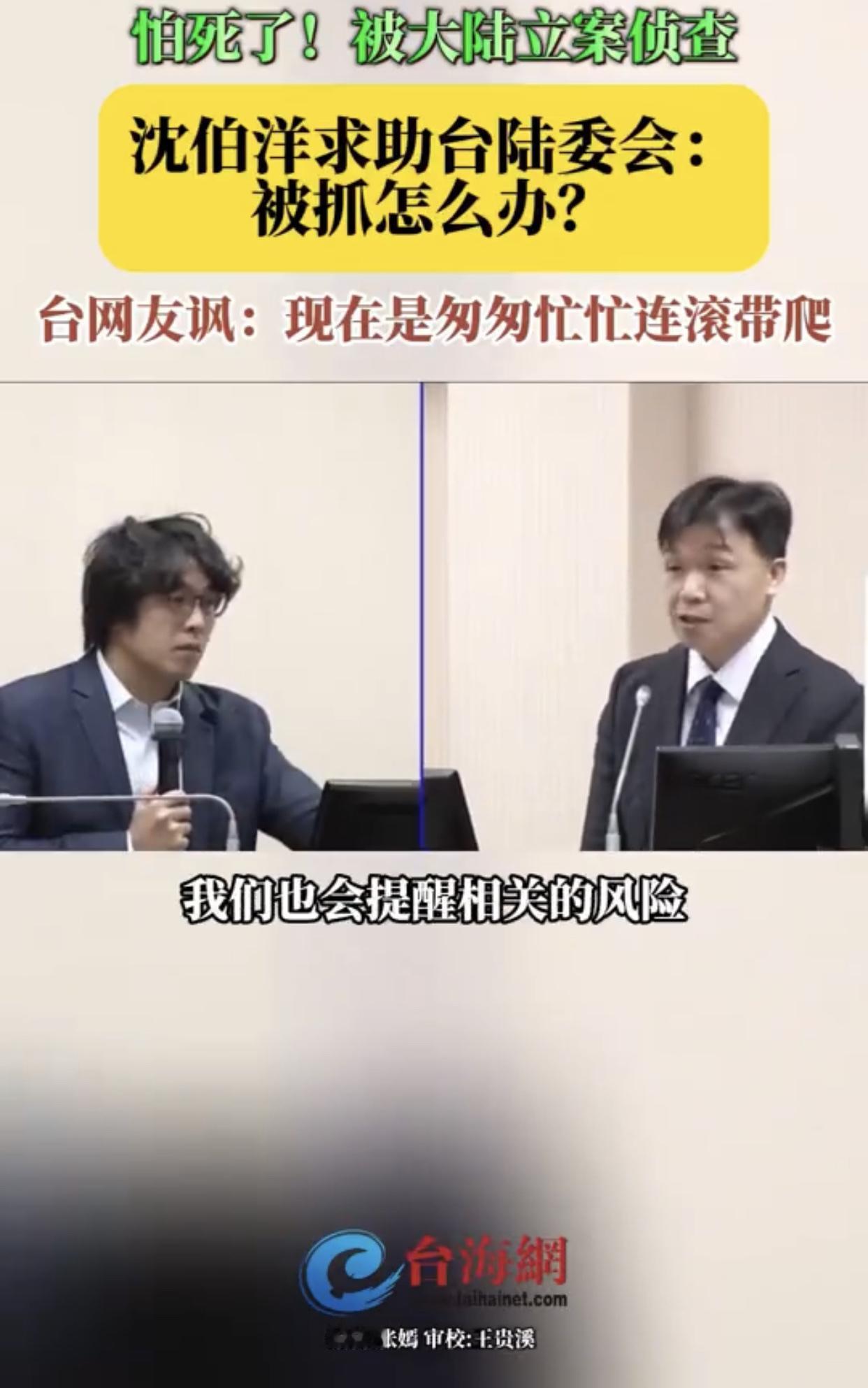 沈伯洋向陆委会求助称,他在台湾岛外被抓,该怎么办? 沈伯洋:“重庆公安局对我祭出立案侦查,我现在比较担心的一件事情就是,如果我在台湾岛以外别的地方被抓了,那该怎么办?” 台湾陆委会:“我们也会提醒相关的风险,未来这个必须要更加的谨慎,最好不要随便离开台湾。” 台湾网友嘲讽沈伯洋: “不是说不会怕吗?怎么会又担心了呢?” “现在是匆匆忙忙连滚带爬!没出息!” “怕的要命,之前不是很嘴吗?” “吓的瑟瑟发抖,但却强装笑容、好哭!”