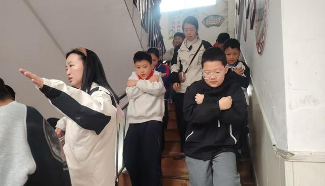 各班学生在班主任引导下,迅速放下文具,双手交叉护胸、弯腰沿教室右侧有序撤离;楼层值守教师提前到位,在楼梯拐角、狭窄通道提醒慢点走、不推挤,引导学生保持间距;学生们遵循右行、护胸、不追逐原则,快速向操场安全区域集结。