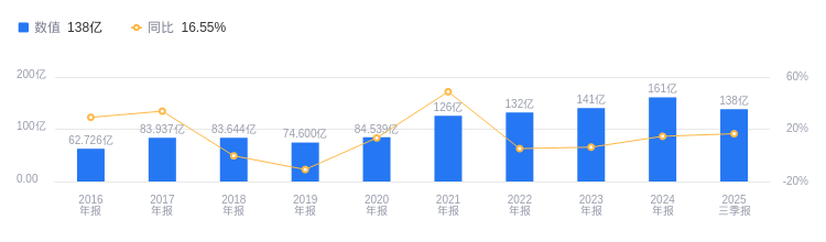 2025年三季度,三安光电营业收入达138.17亿元,位居行业第一(共30家),高于行业第二名木林森16.39亿元,行业平均为24.74亿元,中位数为10.46亿元。净利润为1.06亿元,行业排名第八,行业第一名利亚德为2.95亿元,第二名木林森为2.13亿元,行业平均为4649.48万元,中位数为3586.42万元。