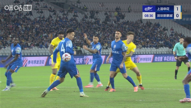 直播吧10月31日讯中超第29轮,上海申花vs深圳新鹏城,比赛第9分钟,蒋圣龙禁区内停球不慎打到自己的手臂,但裁判认定是二次反弹球,没有判点球。