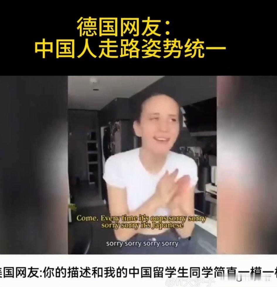 一位在中国生活了十年的德国网友, 表示中国人走路姿势统一, 都是背着手身体往前倾, 中国人站着的时候喜欢双手检查, 不管几岁的小孩子还是年龄大的都是这样,德国网友表示他见到的中国人真的是这样。另外她表示在国外双手搓一搓到处对不起的是日本人,大声说话阿西吧的是韩国人,双手交叉到处逛不说话的就是中国人,这可把韩国人网友气坏了,他们表示这是污蔑, 韩国人可不会大声说话, 这位德国女孩表示她回到德国, 遇到了亚洲面孔的邻居, 一眼就认出了他们是中国人, 方法很简单, 你就看他们晒不晒被子就完事了, 这确实中国人的爱好, 另外她还表示中国人睡觉, 哪里都可以不盖, 但是肚脐眼必须要盖住, 她表示自己在广州生活, 二三十度的高温, 睡觉还让盖肚脐眼, 他们不热吗? 大家觉得德国人总结的对不对? 习惯旅行的意义 老外评价中国人 外国的中国人 外国人游玩中国 外国人中的中国