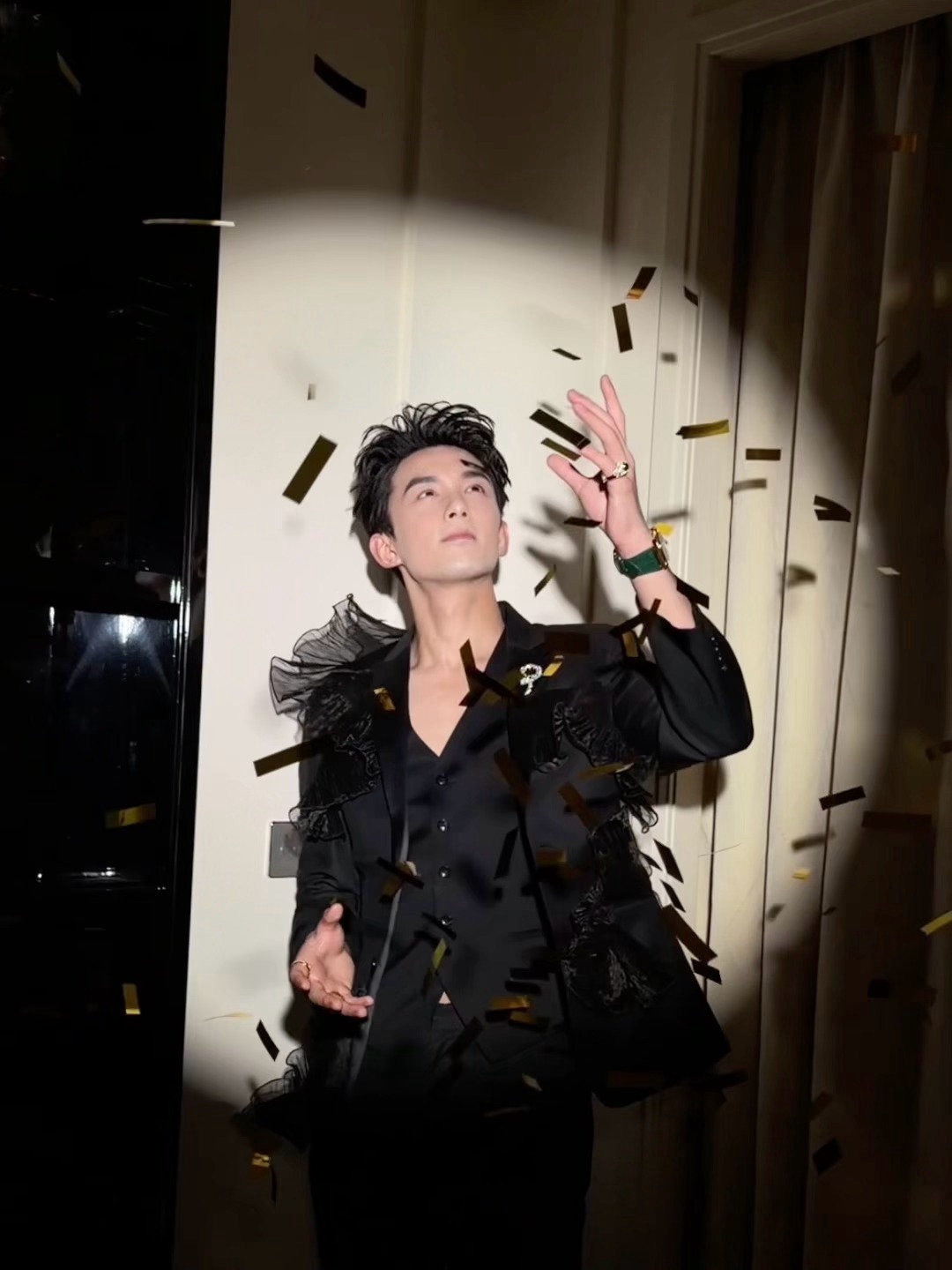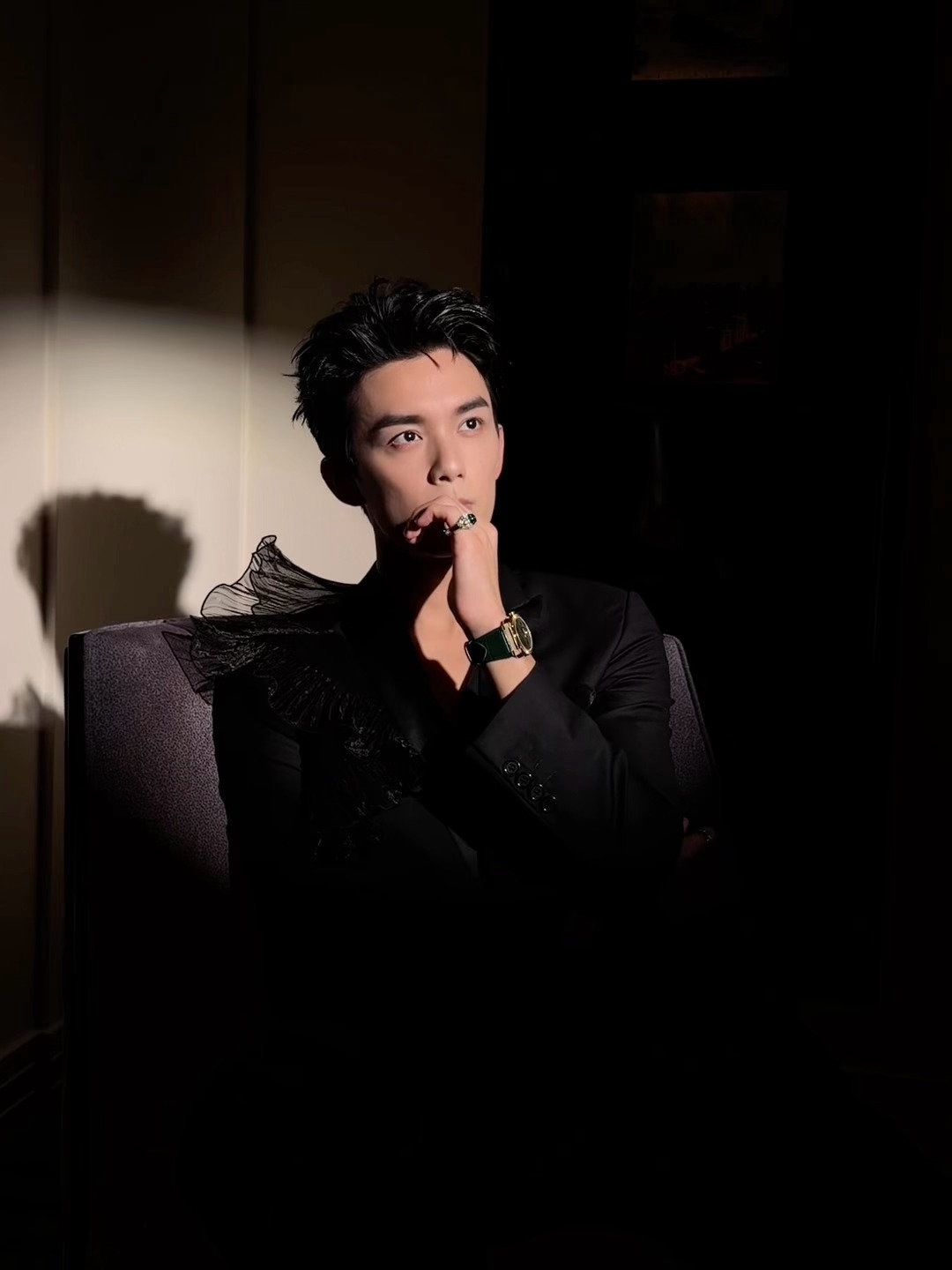 一袭Peet Dullaert 特别定制黑纱褶饰西装礼服出镜,光影下流动璀璨锋芒,贵气十足的品牌代言人优雅登场📸✨