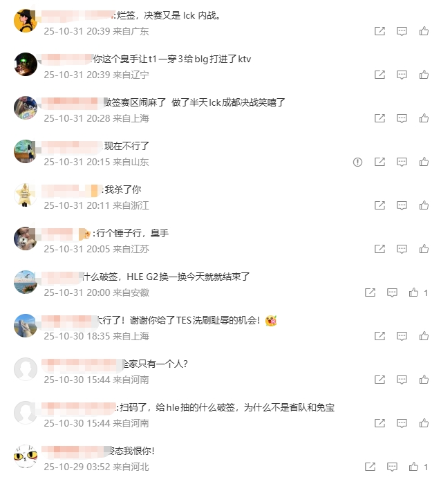 这也能喷?粉丝昏头怒喷姿态抽签:你这个臭手让t1一穿3 给blg打进了ktv
