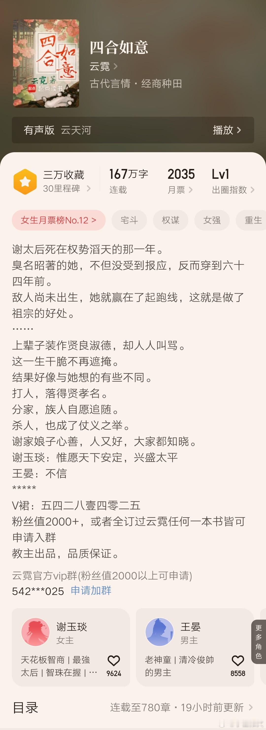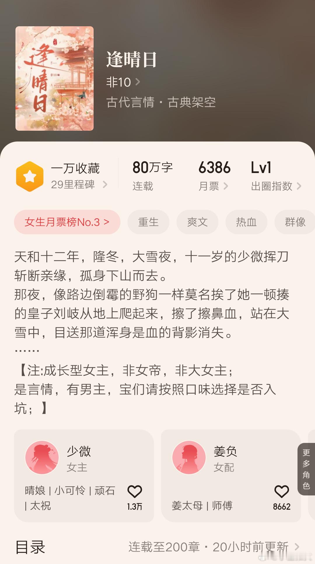 作者写过《长安好》(重生女强称帝)、《如意事》、《喜上眉头》(双重生)