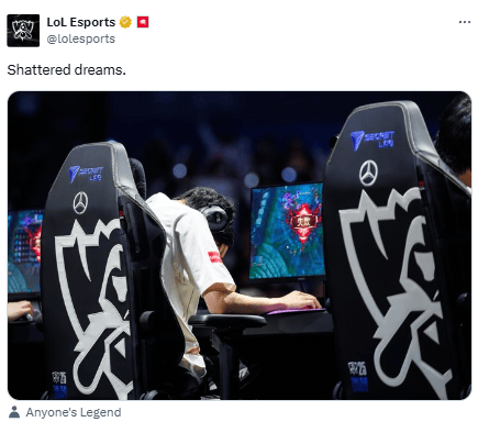 虎扑10月31日讯LOL官推分享水晶爆炸时Shanks捂脸的照片并配文:梦想破灭
