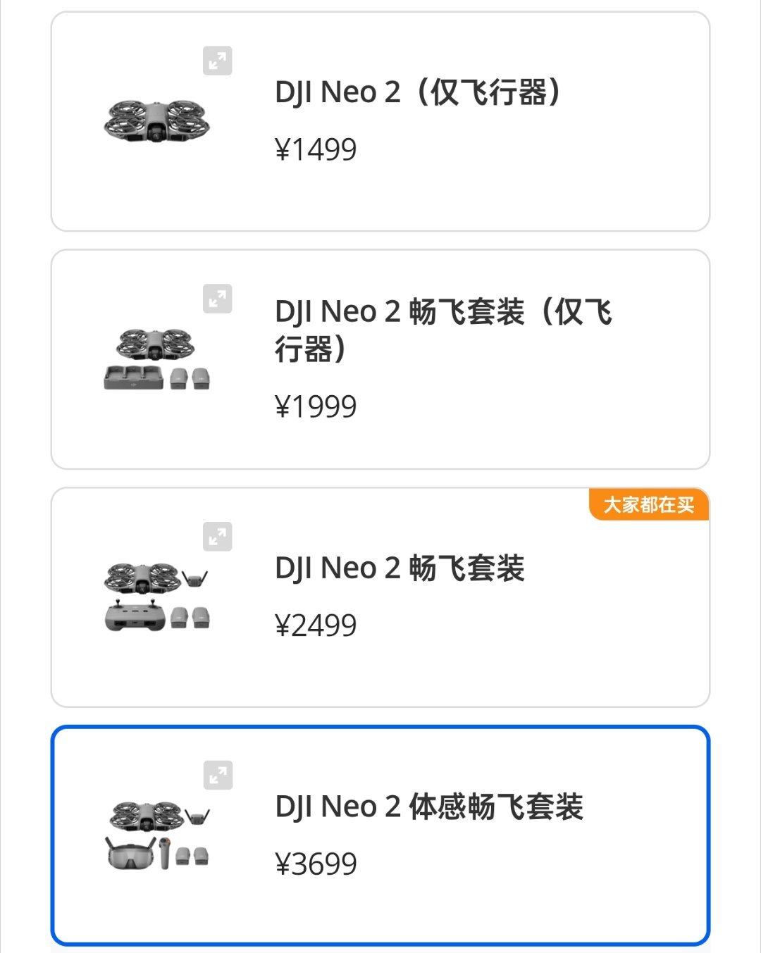 话说,大疆昨晚上了Neo2。这玩意居然还带全向避障,售价1499起。真的是入门无