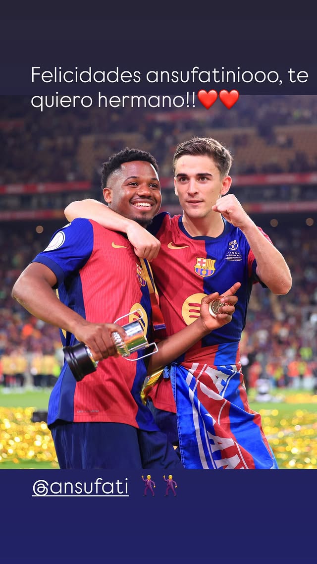 加维社媒晒与法蒂合影并配文:生日快乐!爱你,我的兄弟