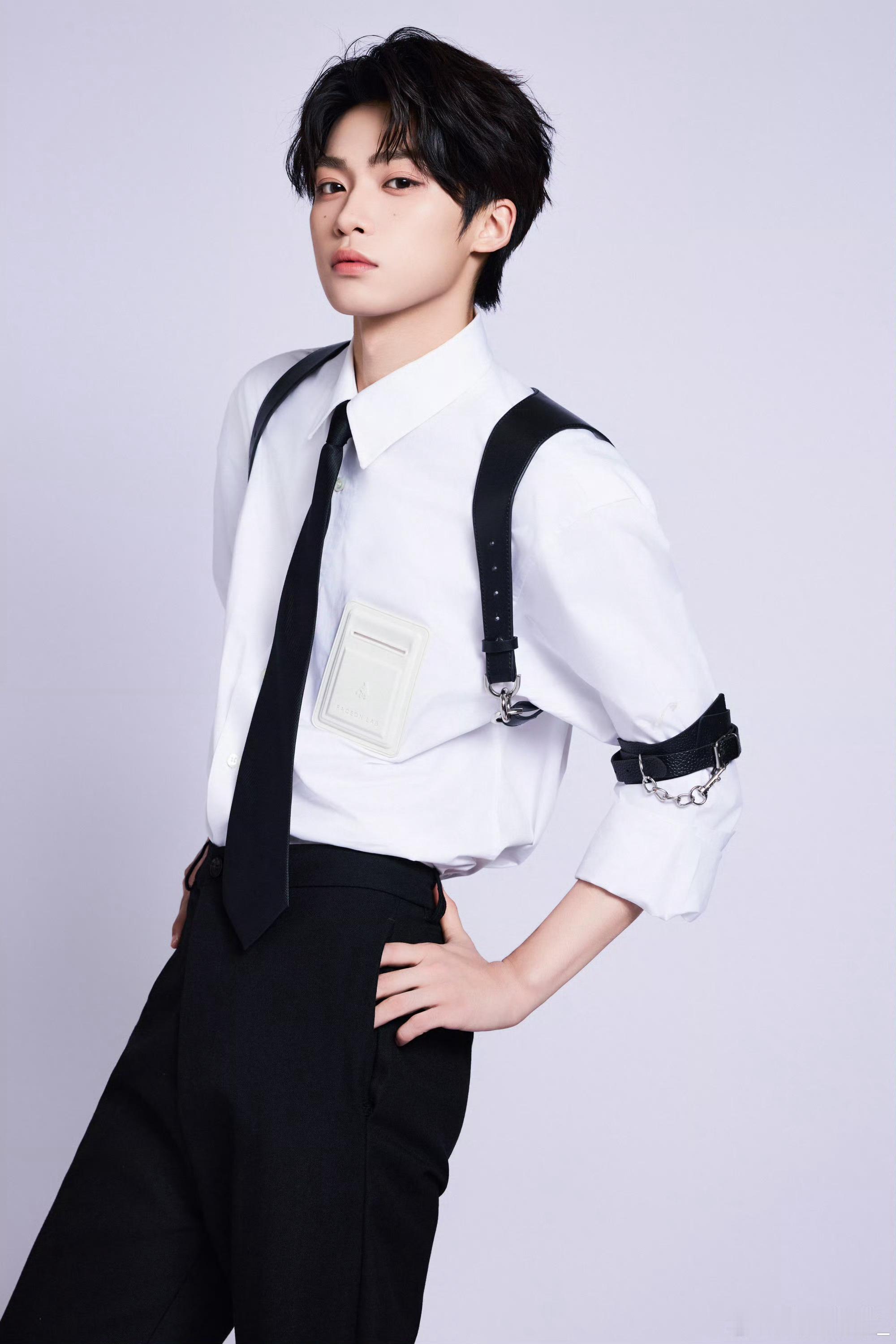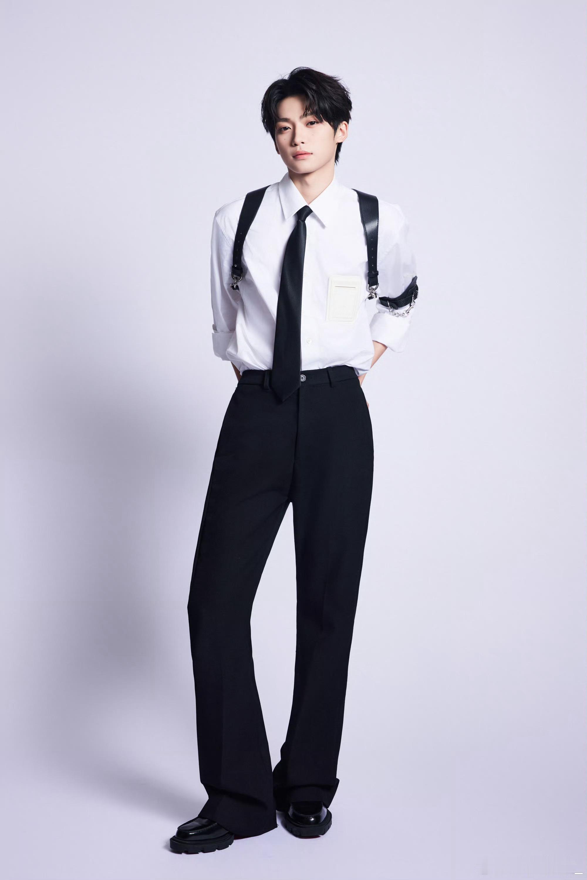 制服👔🎃梓渝 in FACEONLAB 经典白衬衫配领带皮质链条背带臂环小巧
