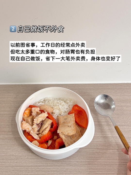 后来决定自己做饭,省下一大笔外卖费,身体也变好了