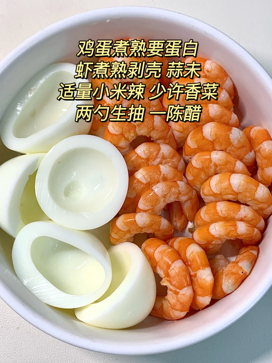 分享巨赞的凉拌鸡蛋虾仁,巨巨好吃!!虾鲜甜爽脆!太赞了!蛋白质巨丰富!简单好做!减脂期的姐妹们快去试试吧! [彩虹R]食材:鸡蛋、虾仁 [开箱R]做法:如图所示~