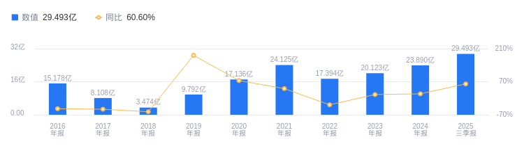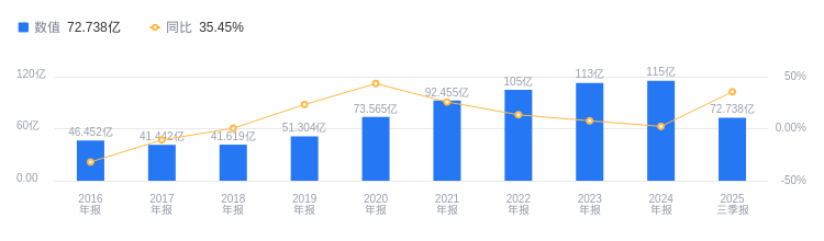 2025年三季度,东吴证券营业收入为72.74亿元,行业排名17/45,行业第一名中信证券营收558.15亿元,第二名国泰海通458.92亿元,行业平均数为94.29亿元,行业中位数为44.23亿元。同期净利润为29.49亿元,行业排名15/45,行业第一名中信证券净利润239.16亿元,第二名国泰海通230.59亿元,行业平均数为38.81亿元,行业中位数为17.09亿元。
