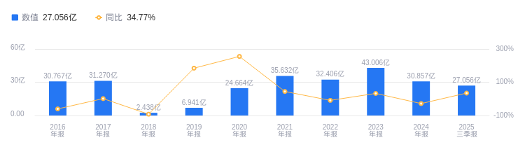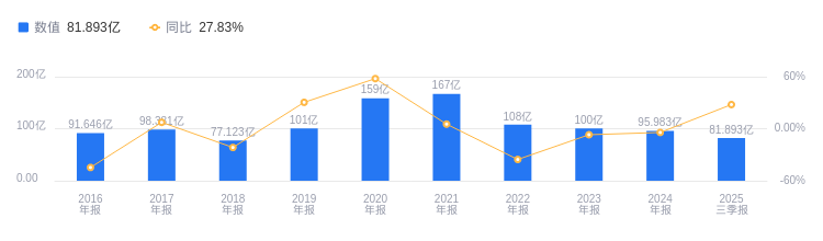 2025年三季度,光大证券营业收入为81.89亿元,在45家同行业公司中排名第16,行业第一名中信证券营收达558.15亿元,第二名国泰海通为458.92亿元,行业平均数是94.29亿元,中位数为44.23亿元;净利润为27.06亿元,同样排名第16,行业第一名中信证券净利润239.16亿元,第二名国泰海通230.59亿元,行业平均数为38.81亿元,中位数是17.09亿元。