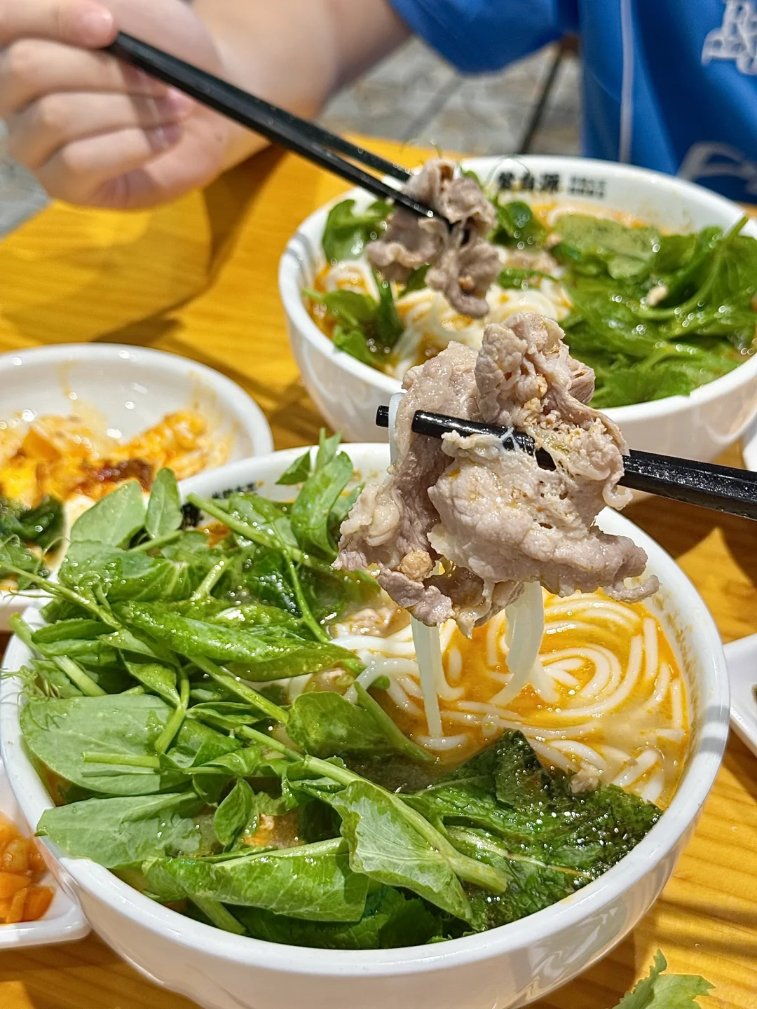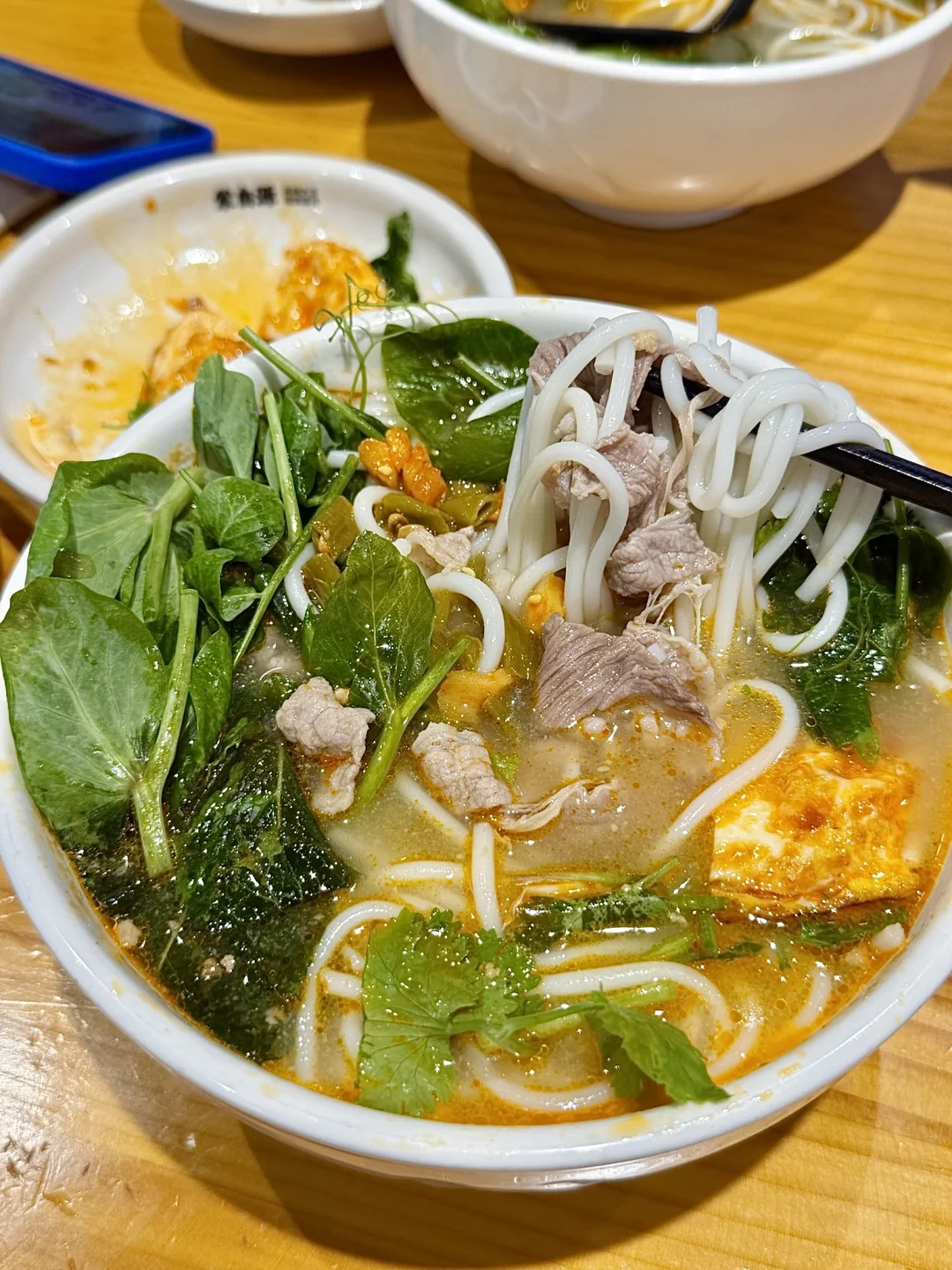 反反复复吃的店!!真的很香🤤 这次生滚烫米线系列全国上新啦!! 已经迫不及待过来尝鲜了!! 🍜 生滚烫肥牛米线 一口滚烫 鲜晕了😳肥牛片➕鲜嫩豌豆尖➕清香薄荷的组合 很绝✨还原云南山野风味 汤头好喝!米线吸🈵汤汁好过瘾!! 🍳傣味荷包蛋 酸酸辣辣 一整个开胃 是米线搭子无疑了