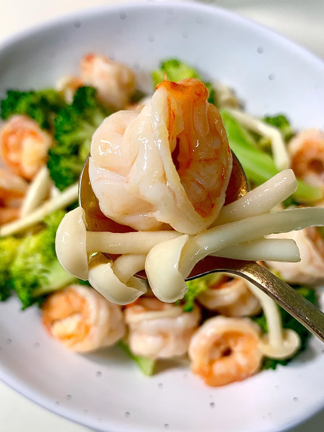 西兰花搭配炒虾仁白玉菇简直是绝配呐!