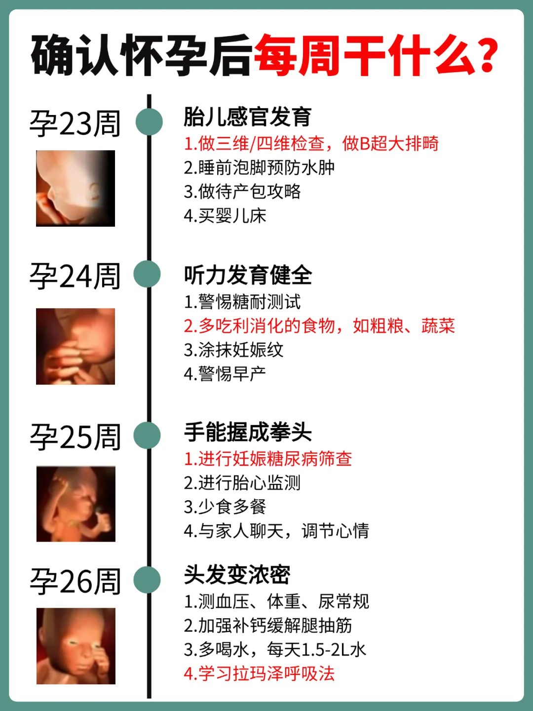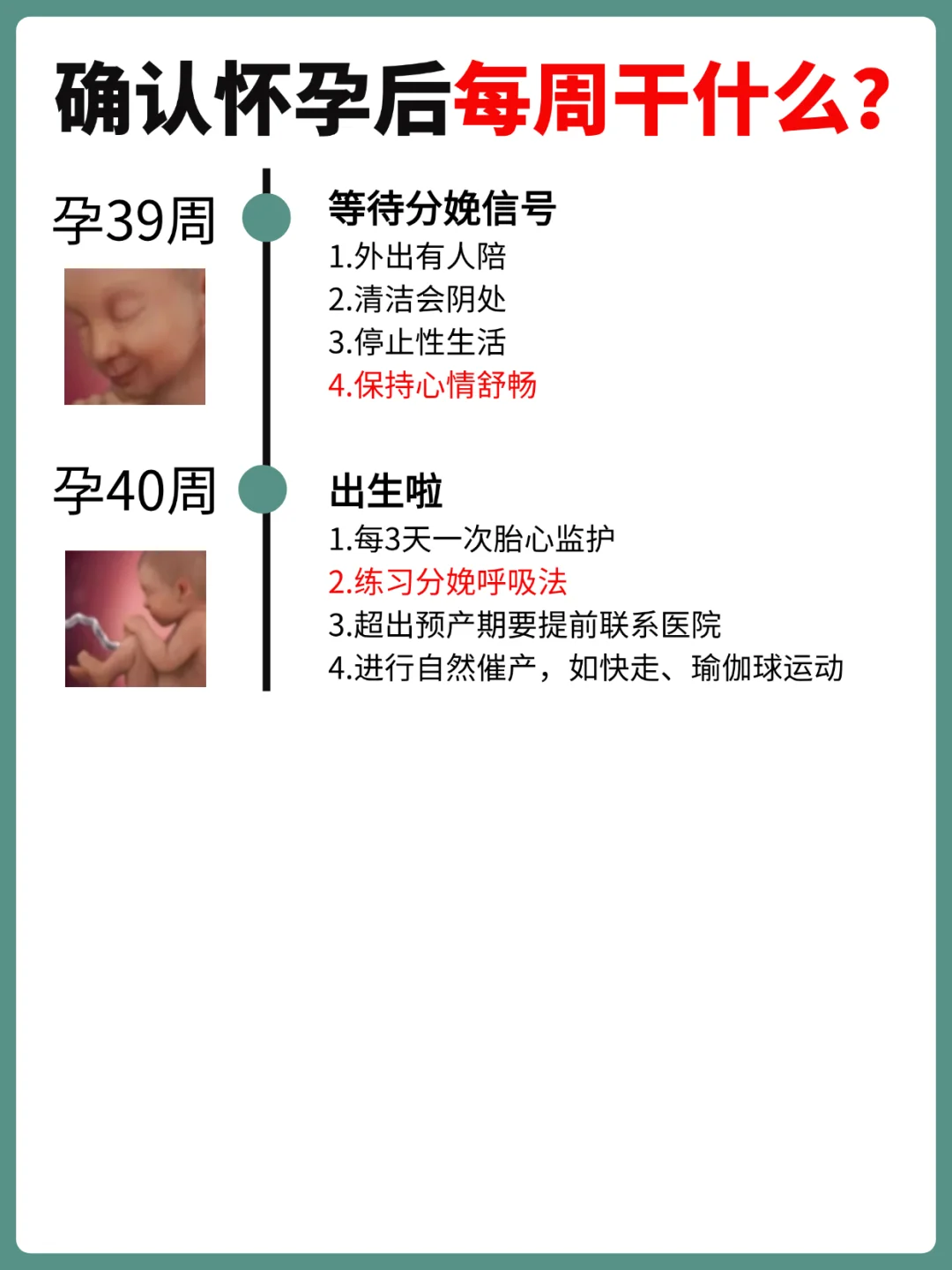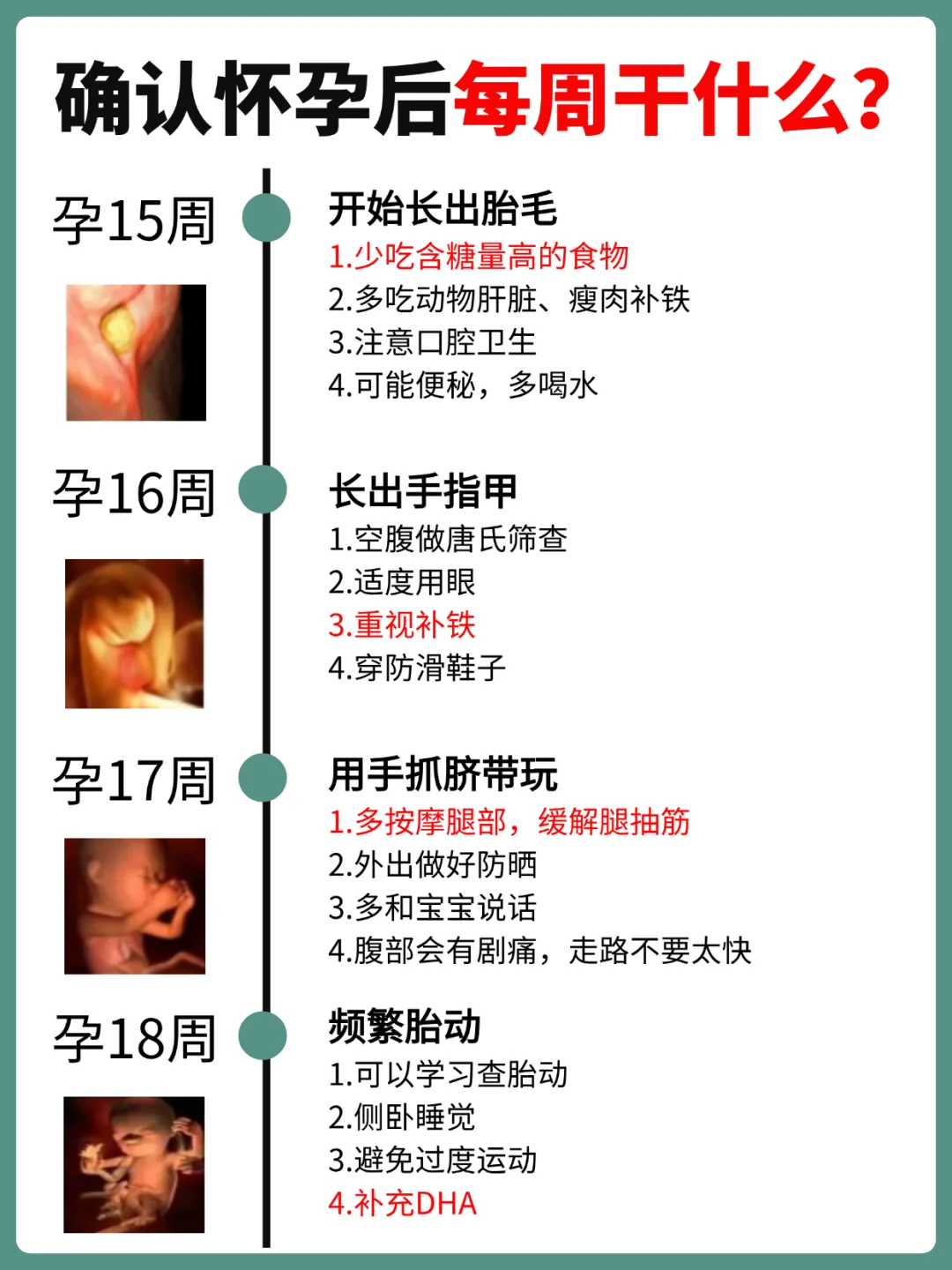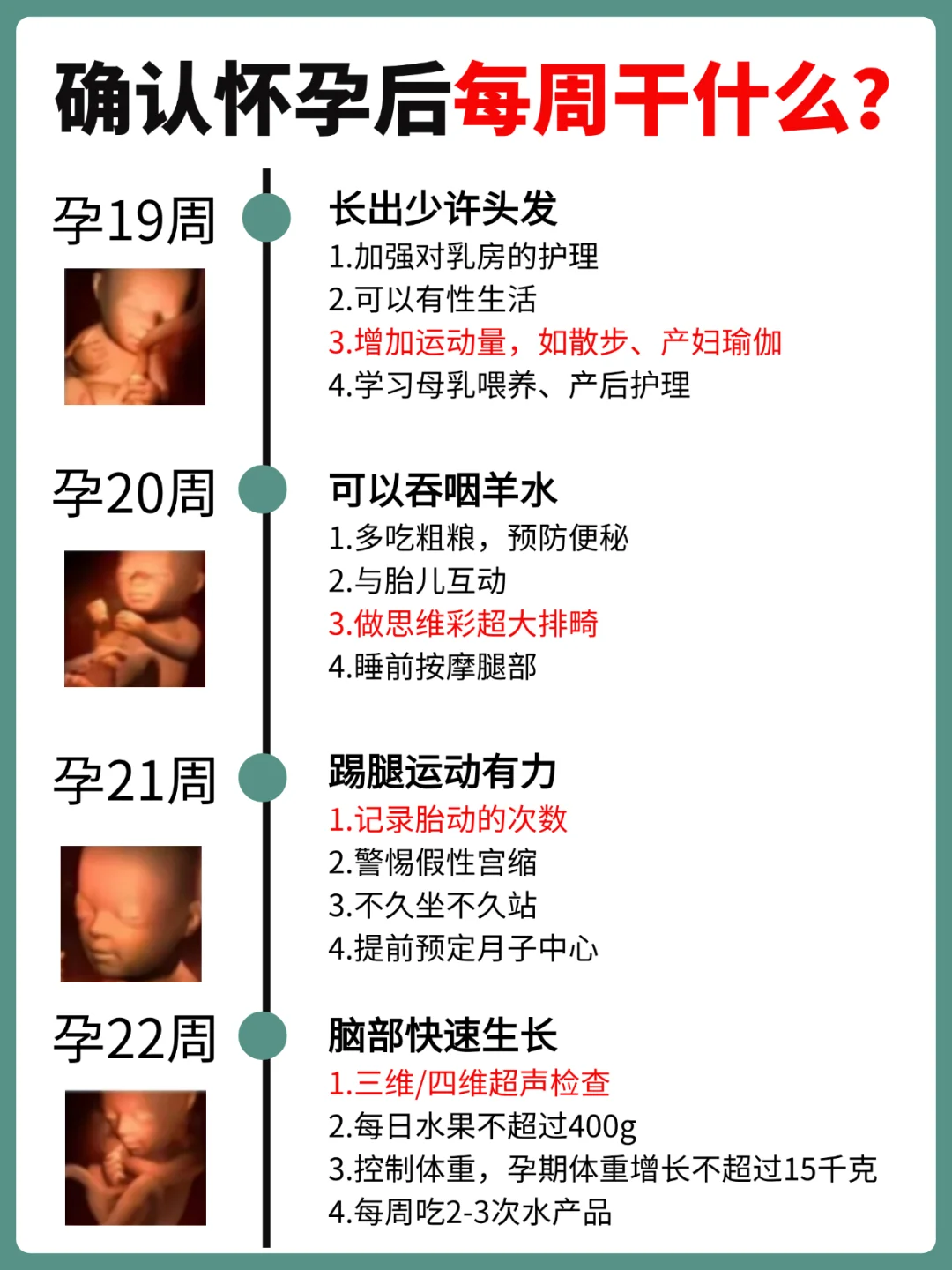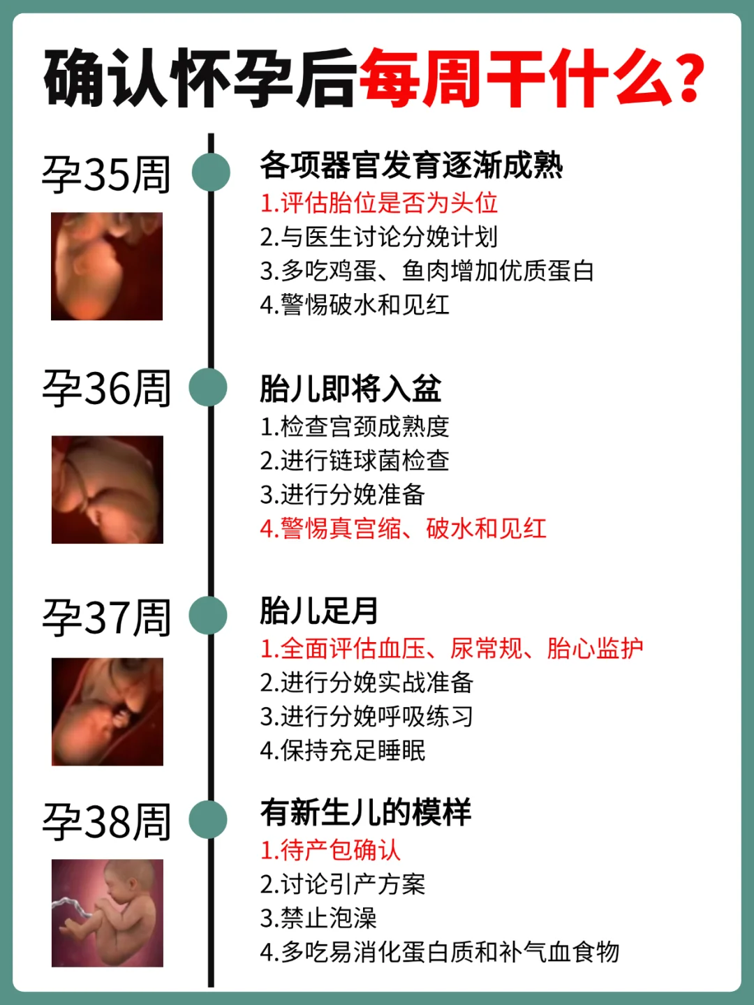 第一次怀孕,难免会手无足措,这里整理了怀孕时每周要做的事情 内容包含👉胎儿发育进程+注意事项+产检事项 非常干货! . 第一次怀孕的准妈妈,建议收藏慢慢看✔️