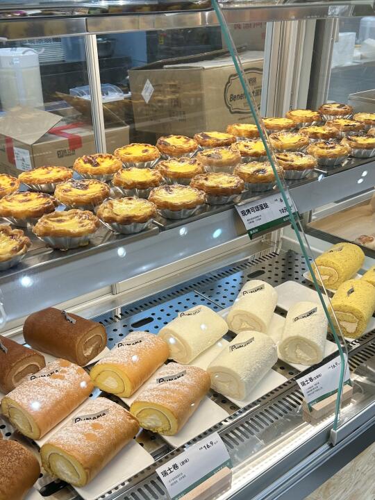 这家提拉米苏颜值超高!口味也好多。。 每一款都想尝👅 这家店主打一个新鲜✌️都是当天现做的!! 零食都是可以试吃的!!! ⭐️这几款一定要安排: 可颂蛋挞:便宜又好吃 很酥脆! 现磨花生酱:现磨现卖 打磨细致 口感绵密 原叶鲜奶茶:茶香浓郁 味道不输外面奶茶店 提拉米苏:超大块!真的太满足了! 手撕鸭:甜辣口感 越吃越想吃!!