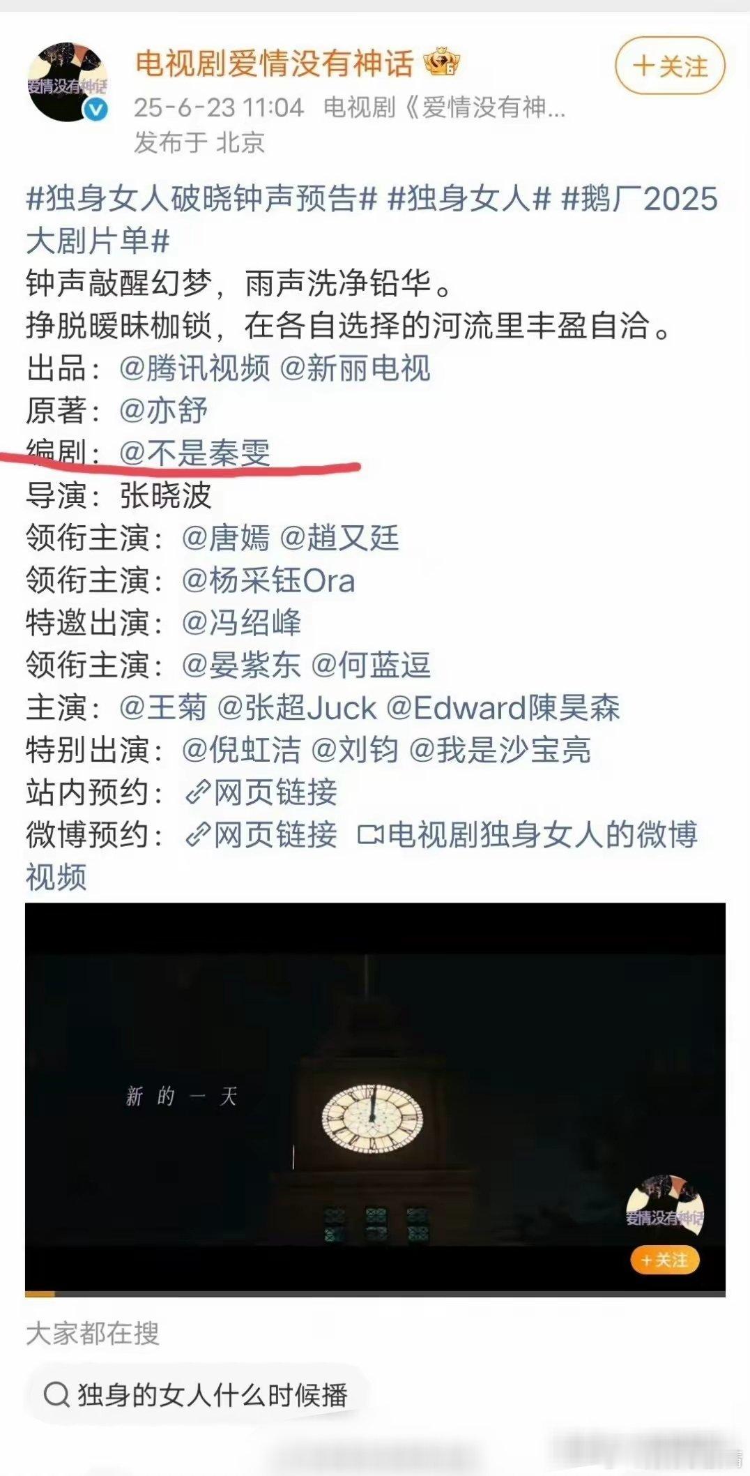 唐嫣的《爱情没有神话》现在也很危险,秦雯作为编剧居然拿到了一番,压了导演张晓波和主演唐嫣赵又廷,甚至给她发单人生日海报。