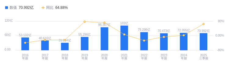 2025年三季度,中信建投实现营业收入172.89亿元,行业排名10/45,远高于行业平均数94.29亿元和中位数44.23亿元,但与第一名中信证券的558.15亿元、第二名国泰海通的458.92亿元仍有差距。同期净利润为70.99亿元,行业排名9/45,高于行业平均数38.81亿元和中位数17.09亿元,第一名中信证券净利润为239.16亿元,第二名国泰海通为230.59亿元。