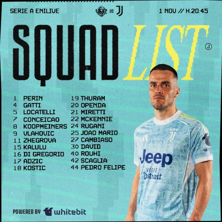 直播吧11月1日讯北京时间周日凌晨的意甲第10轮比赛,尤文将前往客场挑战克雷莫内塞,斑马军团新帅斯帕莱蒂到时迎来自己执教球队的首秀。目前,尤文已经公布了本场比赛的大名单,DV9、伊尔迪兹入选,卡卢卢、凯夫伦-图拉姆在列,布雷默缺阵。
