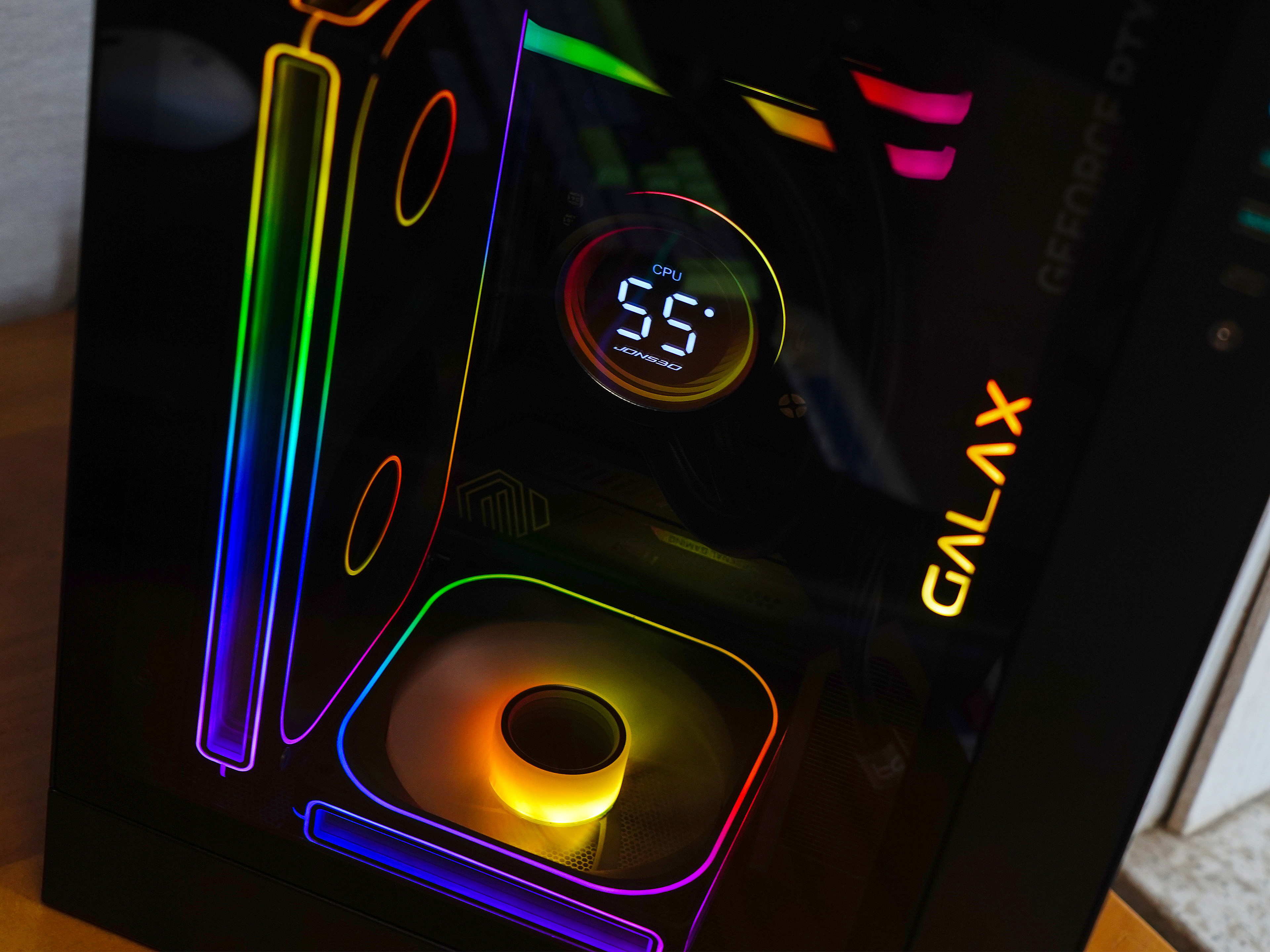 ▼“GALAX”的logo具有ARGB灯效,并且这是一个磁吸模块(金属触点供电),可拆下选择放到完全封闭的前端。