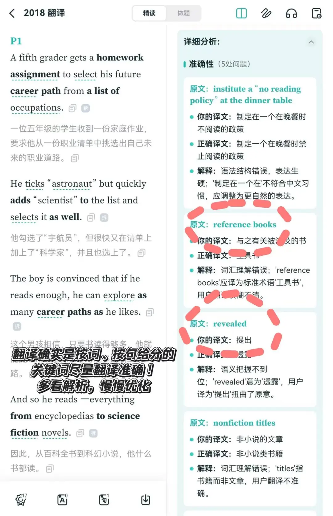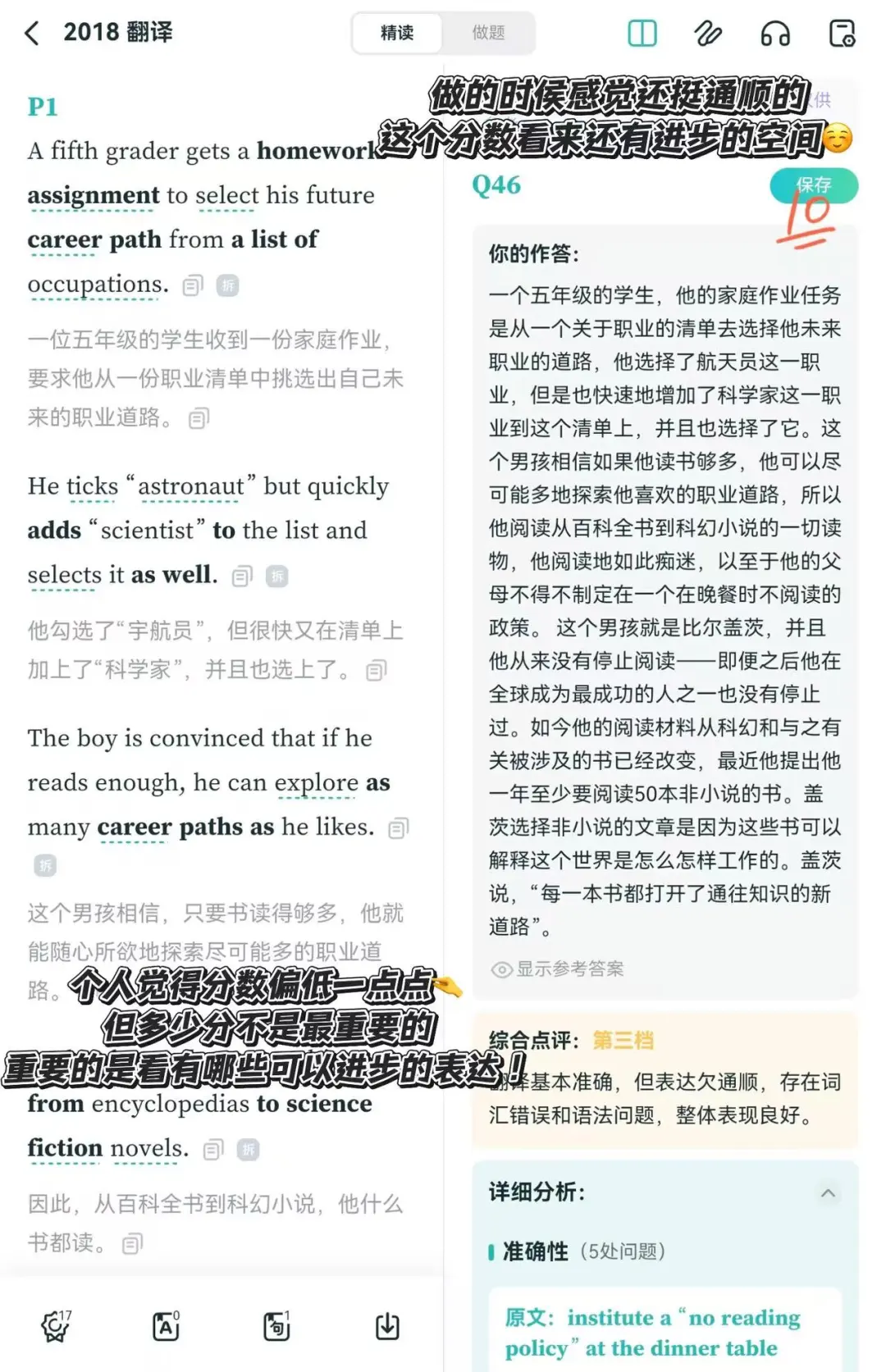 如果这7个是阅读题,那我可能就是70分左右的水平,和88分相比!大家可想而知,阅读和完型之间的性价比。
