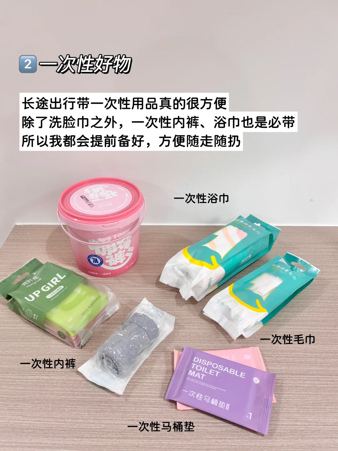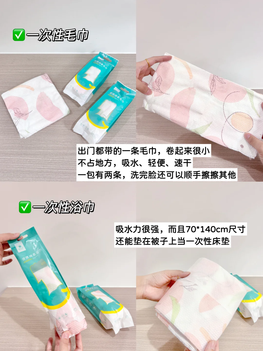 除了洗脸巾之外,一次性内🩲、浴巾也是必带