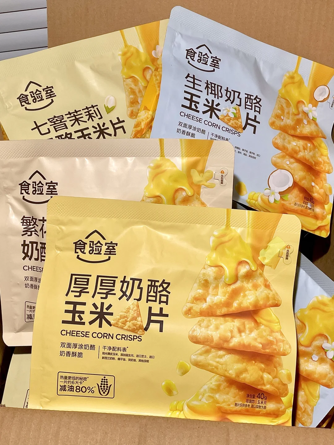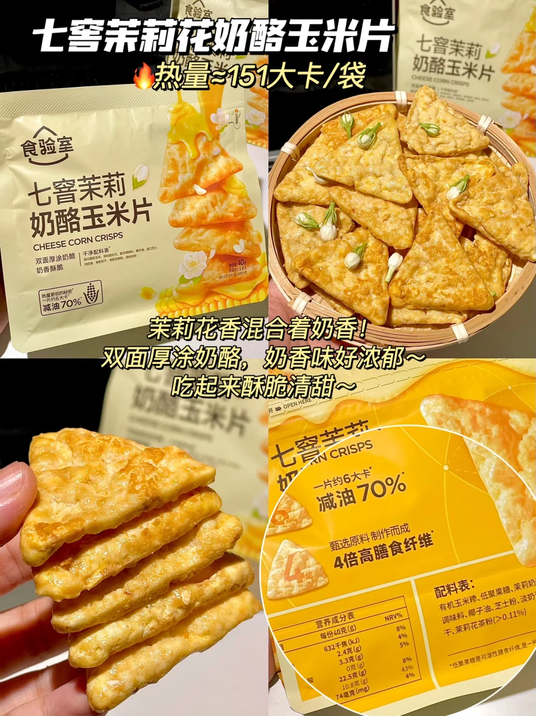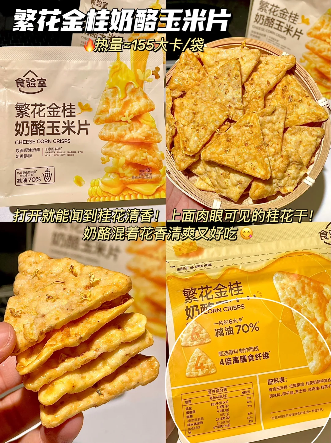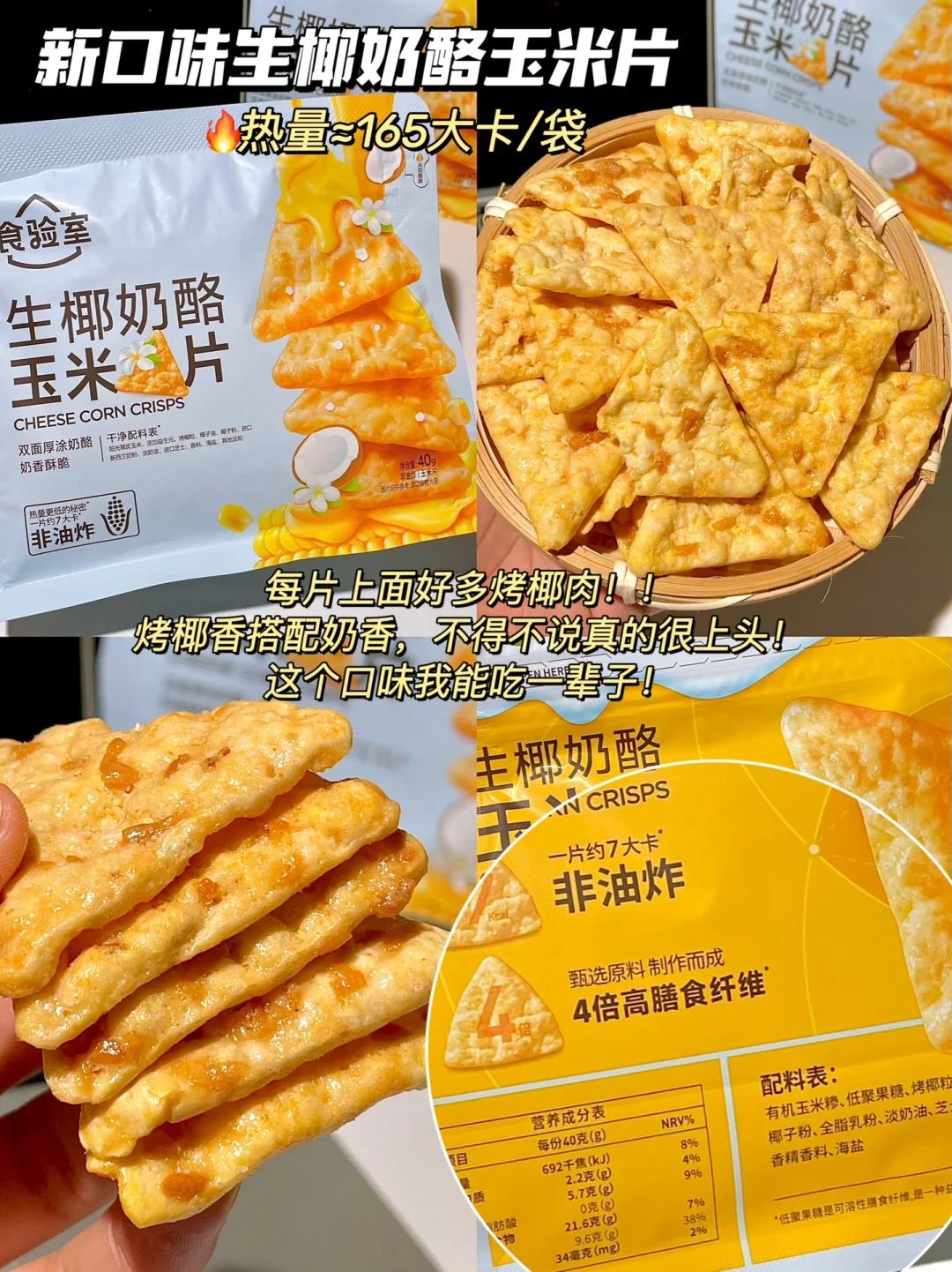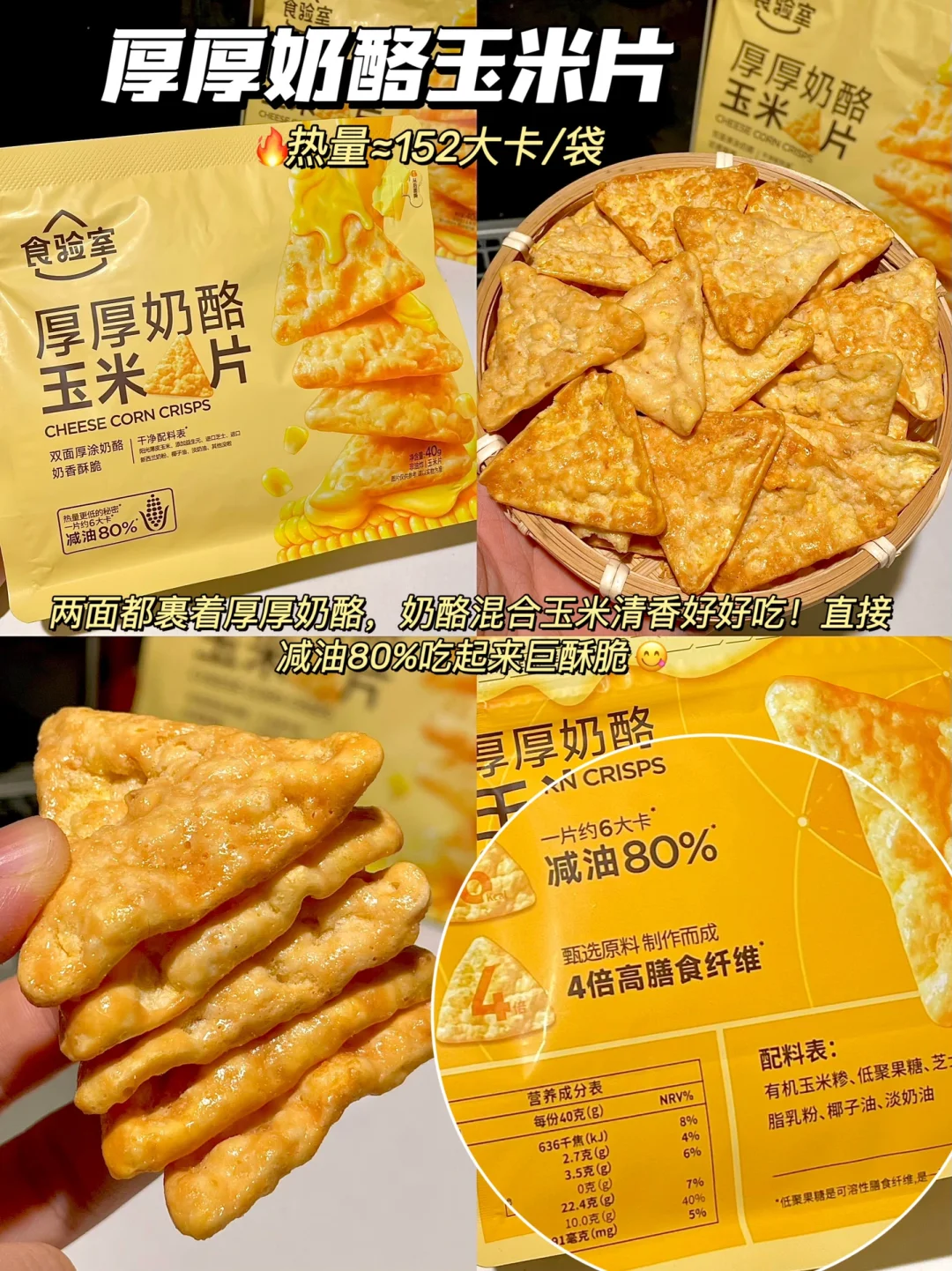 作为一个大馋丫头管理期真的做不到不吃零食呀! 管理期犯猪瘾全靠食验室奶酪玉米片[皱眉R],有一说一,这玩意儿比薯片还好吃!! 这次原料升级后用的是东北有机玉米糁,直接把玉米片减油80%,一片热量只要六七大卡,吃起来健康又清爽!! ✅不仅热量低!还高膳食纤维!高蛋白!简直是管理期人的天选零食!! 1⃣食验室厚厚奶酪玉米片 2⃣新口味生椰奶酪玉米片 3⃣繁花金桂奶酪玉米片 4⃣七窖茉莉花奶酪玉米片 玉米片两面都裹满了厚厚的奶酪,吃起来满满的奶酪和玉米香味!又香又酥😍~ 四个口味真的都不踩雷!! 特别是新出的生椰奶酪口味,不得不说食验室在做玉米这块真的有天赋!!椰香搭配奶香混合玉米的清香,口感又上升一个层次!你们一定要试试!! 信我!管理期谁吃谁幸福🤭!! 玉米片奶酪玉米片玉米脆厚厚奶酪玉米片低卡零食厚厚奶酪玉米片繁花金桂奶酪玉米片七窨茉莉奶酪玉米片海盐椰花玉米片