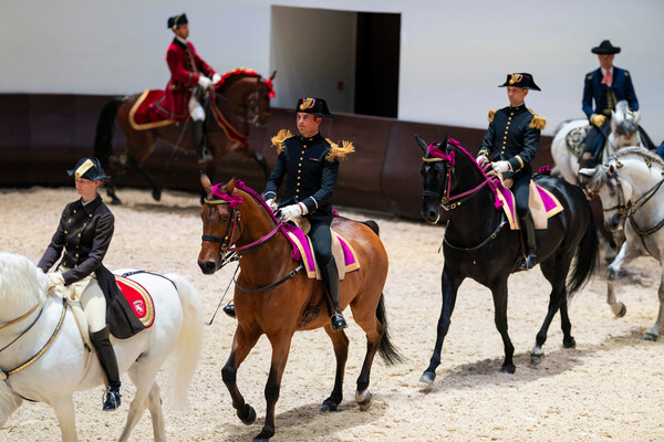 历史上第一次,来自奥地利、西班牙、葡萄牙、法国和现在的阿联酋的所有五所古典马术学校齐聚阿布扎比皇家马术艺术,展示了几个世纪的艺术、精通和文化传统。西班牙骑术学校在标志性的白马芭蕾舞团中展示了其著名的Lipizzaner种马。皇家安达卢西亚马术学校展示了安达卢西亚舞蹈马匹的激情和节奏。葡萄牙马术学校展示了Lusitano马的精准和优雅,而CadreNoirdeSaumur则展现了高等学校马术和表演艺术的独特表现形式。阿布扎比皇家马术完成了这一非凡的阵容,展示了自己的骑手和马匹组合,建立了阿联酋第一个古典马术的永久家园,并将阿联酋的传统与永恒的欧洲传统融为一体。