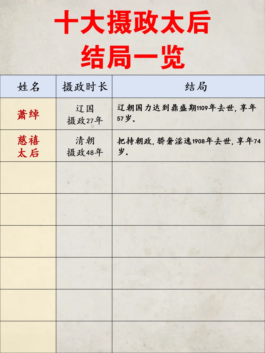 北魏冯淑仪,摄政25年; 辽朝萧绰,摄政27年; 清朝慈禧太后,摄政4...