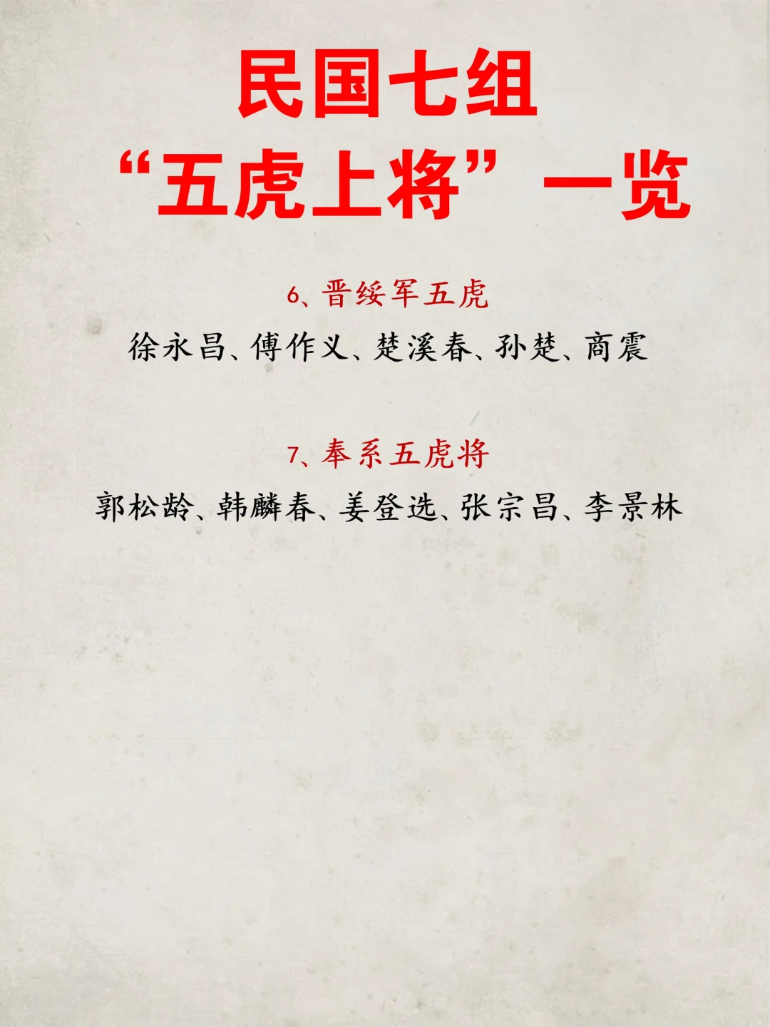 民国七组“五虎上将”一览!