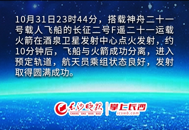 新华社快讯:神舟二十一号载人飞船发射取得圆满成功。