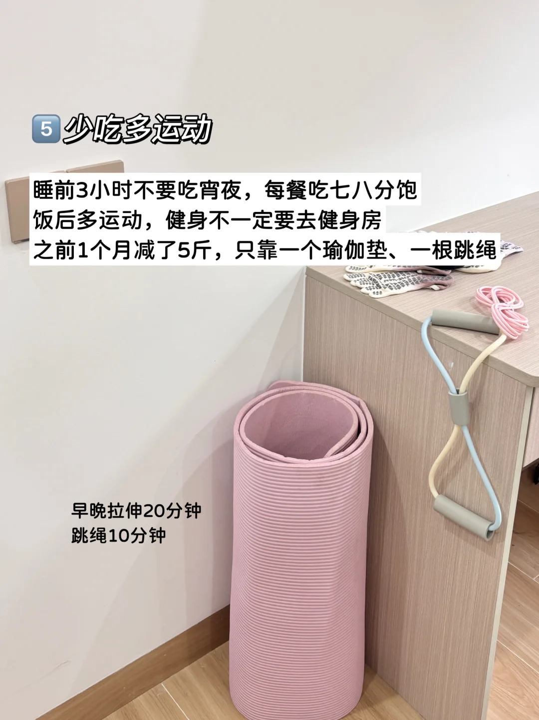 之前1个月减了5斤,只靠瑜伽垫、一根跳绳
