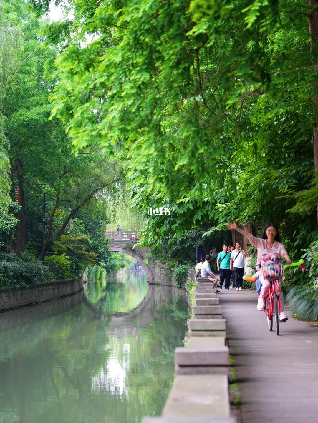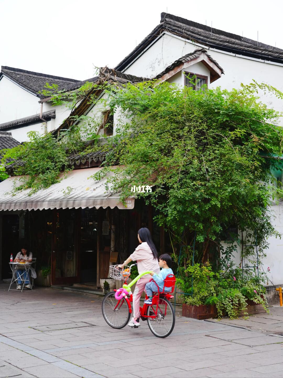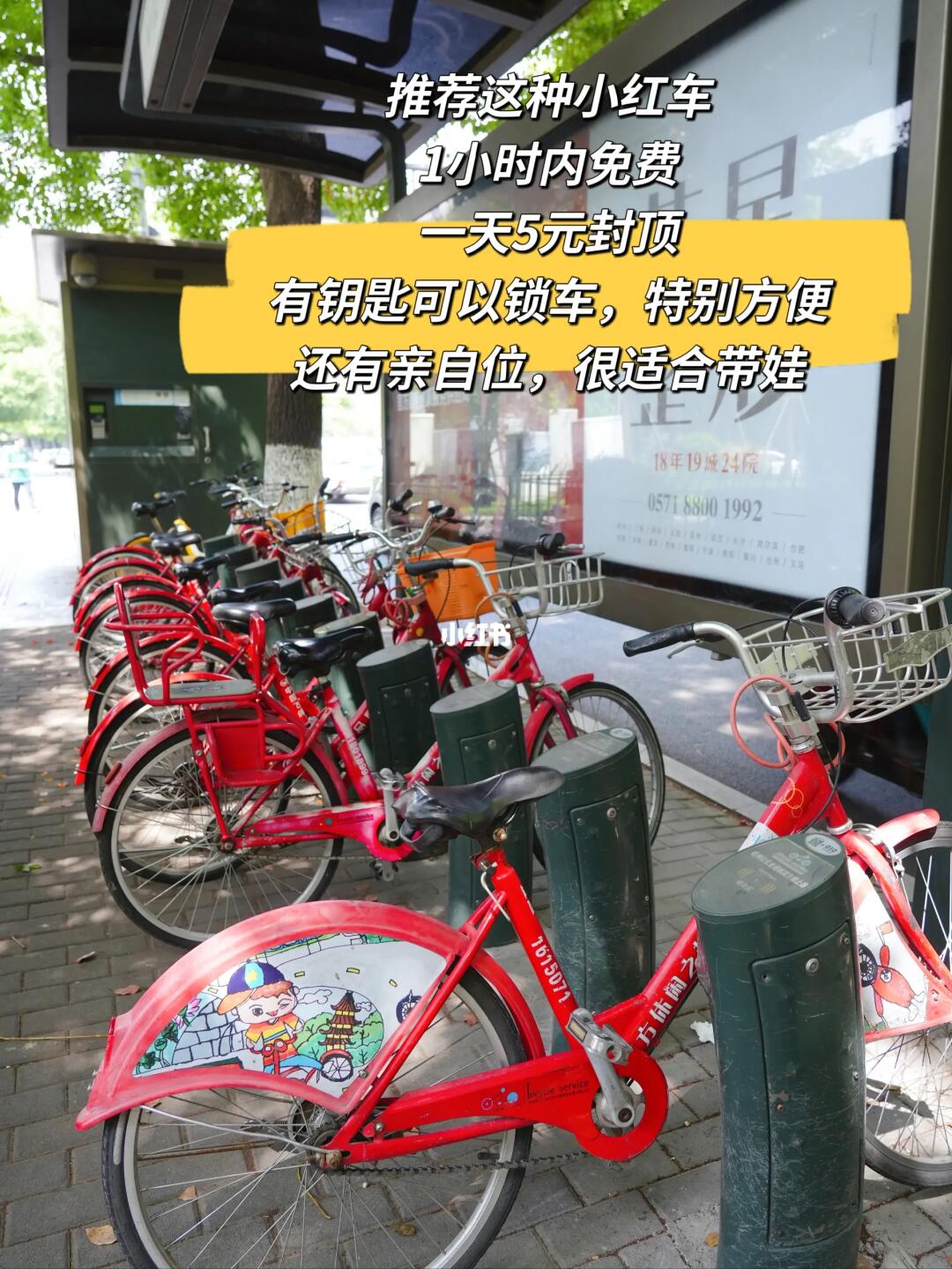 1[打卡R]五柳巷在杭州老城区,车流量很大,不建议自驾,这里很适合一路骑行,带娃特别推荐小红车,一日封顶5元,还有亲子车位,也有锁,很方便