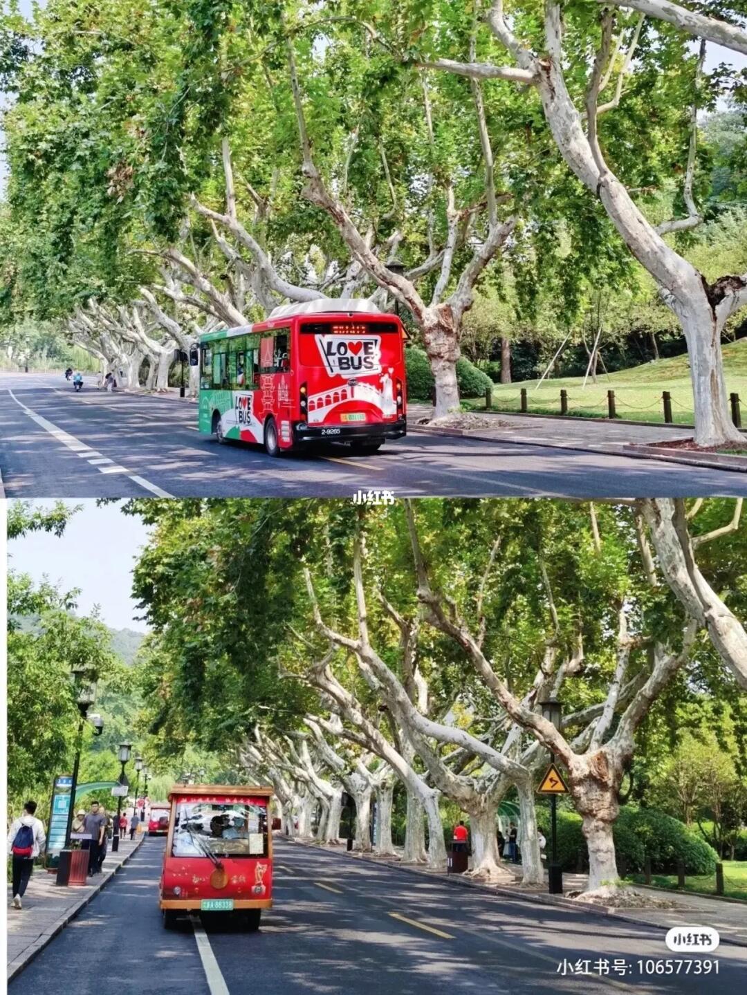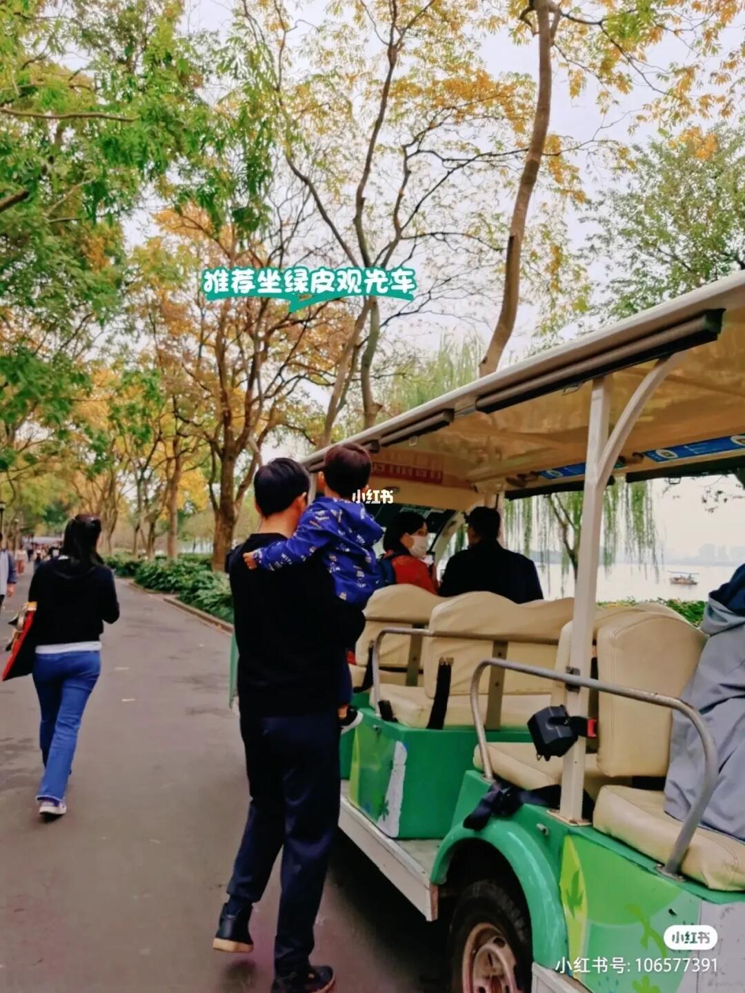 6[打卡R]苏堤上走走,坐绿皮观光车(招手即停),如果这里没有位置,就步行几分钟去雷峰塔坐,那边下来的人多,坐2站到断桥,或者先坐1站到岳庙下来,最近满江红很火,很多人都要来岳庙打卡
