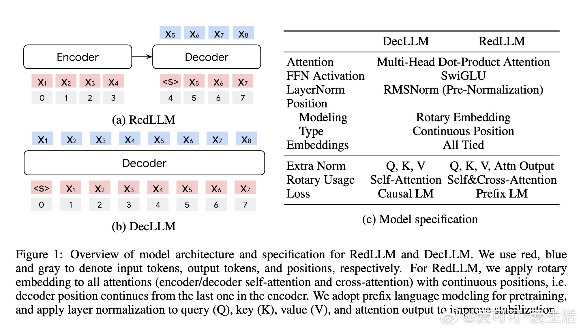 近年来,大型语言模型(LLM)在架构上从编码-解码模式转向了主流的解码器单独模式(DecLLM),但缺少对两者扩展性(scaling)的系统比较,导致编码-解码架构潜力被低估。本文由Google DeepMind团队基于RedPajama V1数据集(1.6万亿tokens)和FLAN指令调优,针对150M至8B参数规模,深入对比了RedLLM(编码-解码架构,采用prefix语言模型预训练)与DecLLM(单解码器架构,采用causal语言模型预训练)的性能与效率。