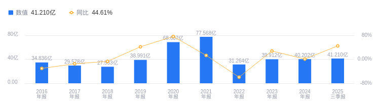 2025年三季度,长城证券营业收入41.21亿元,行业排名25/45,低于行业第一名中信证券558.15亿元、第二名国泰海通458.92亿元,也低于行业平均数94.29亿元和中位数44.23亿元;净利润19.42亿元,行业排名20/45,低于行业第一名中信证券239.16亿元、第二名国泰海通230.59亿元,但高于行业中位数17.09亿元,略低于行业平均数38.81亿元。