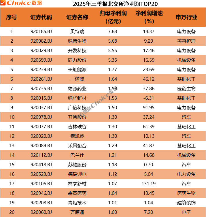 Choice数据显示,主板、创业板、科创板、北交所2025年三季报分别实现营业收