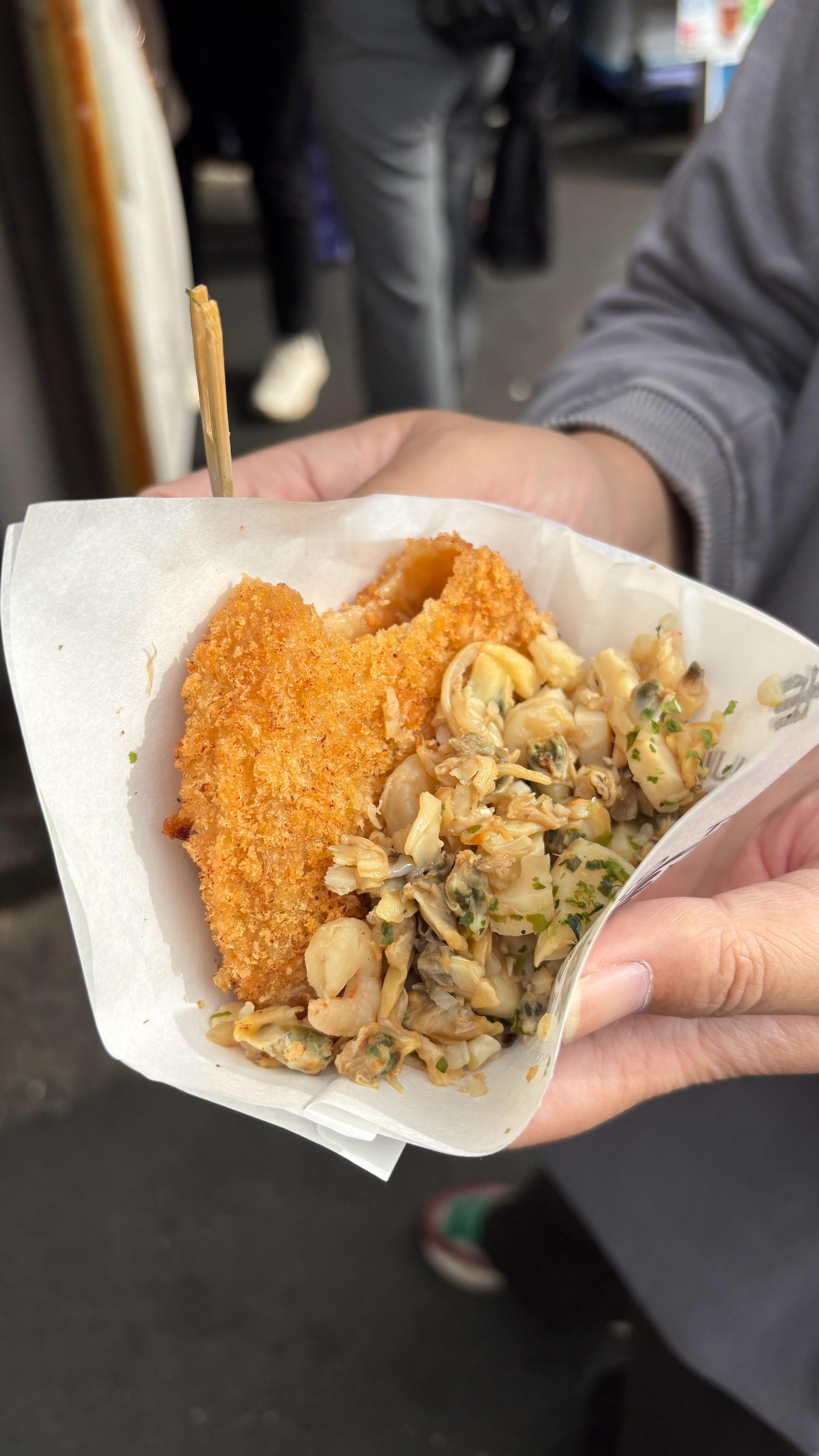 早餐来酒店旁的早市吃个龙虾煎饼,真正的大虾片,口感一般,不推荐。🦞