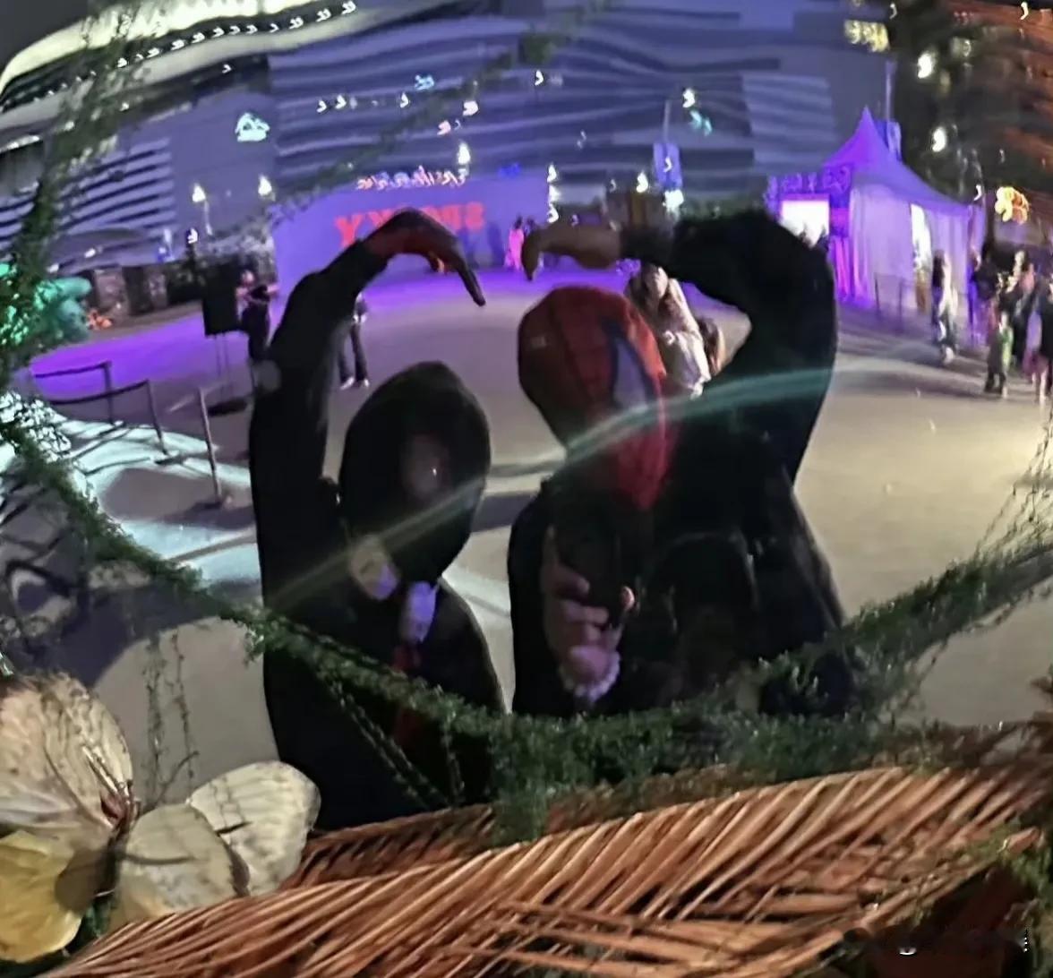 综艺《爸爸去哪儿》里的好兄弟“曼杨杨”组合万圣节聚会! 自从杨阳洋去香港读书后,和费曼相聚的时间就多了。 俩人在万圣节聚会,费曼留着一头长发,个子好高,身形挺胖,穿搭很潮,看长相眉眼像爸爸。据说每一个胖子都是潜力股,他一旦瘦下去,绝对是个大帅哥! 杨阳洋高高瘦瘦,跟爸爸杨威一个模子刻出来的,青春期的大男孩,活泼又搞怪。 看俩人的面具,都像是蜘蛛侠吧。俩人在香港的街头,比心合照,友情万岁!