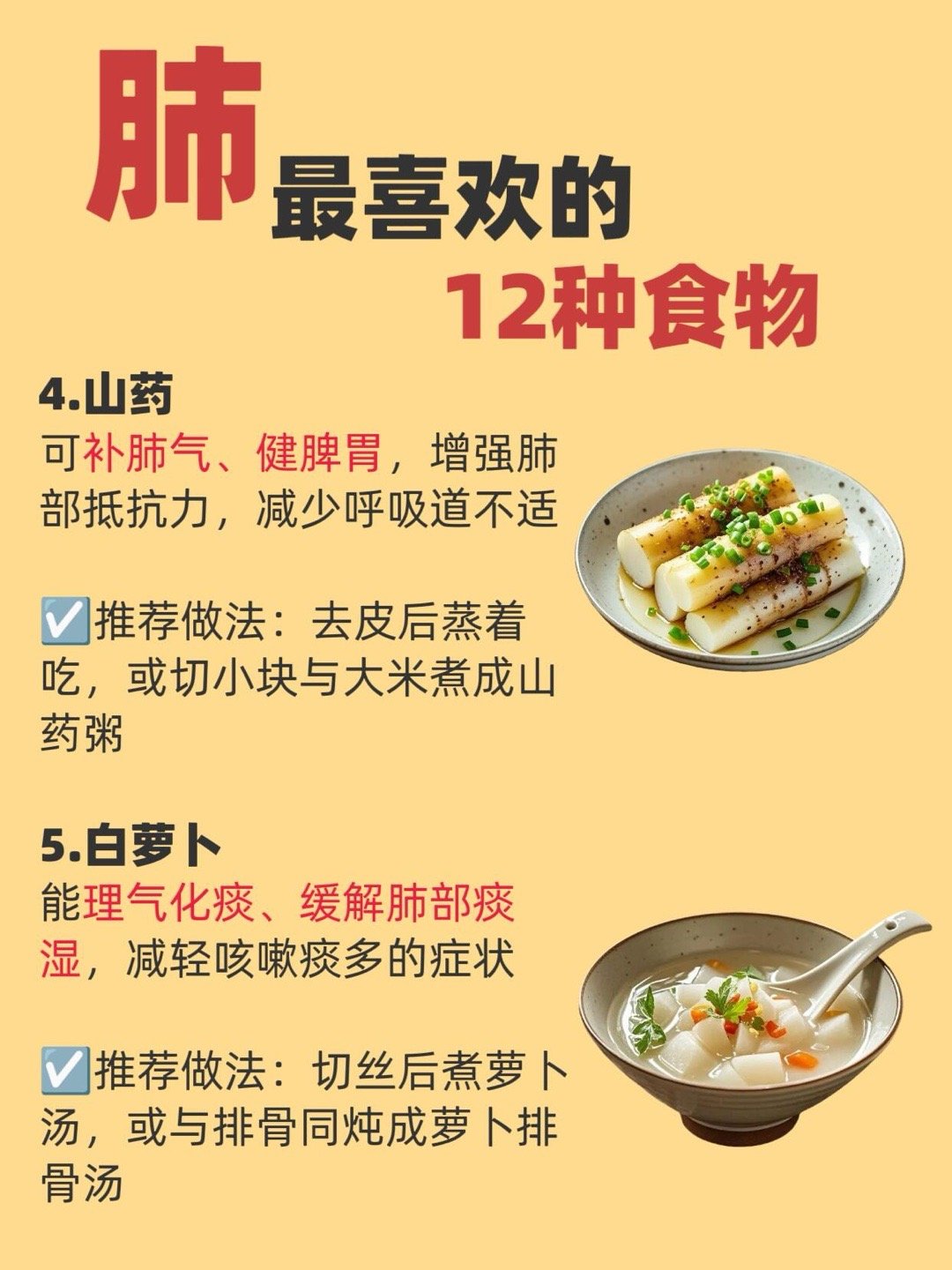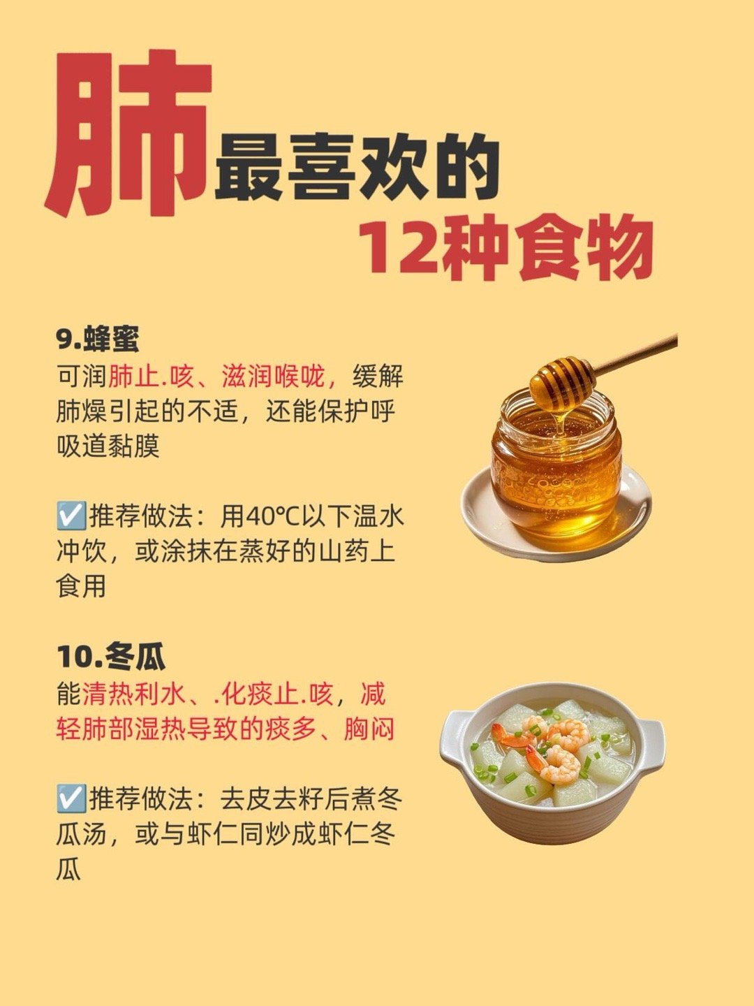 你的肺最喜欢的1⃣️2⃣️种食物👌一到换季容易咳咳的,秋冬干燥的,其实肺是“娇脏”,平时吃错,护错都容易出问题。整理了超实用。 换季干燥的时候就吃这些