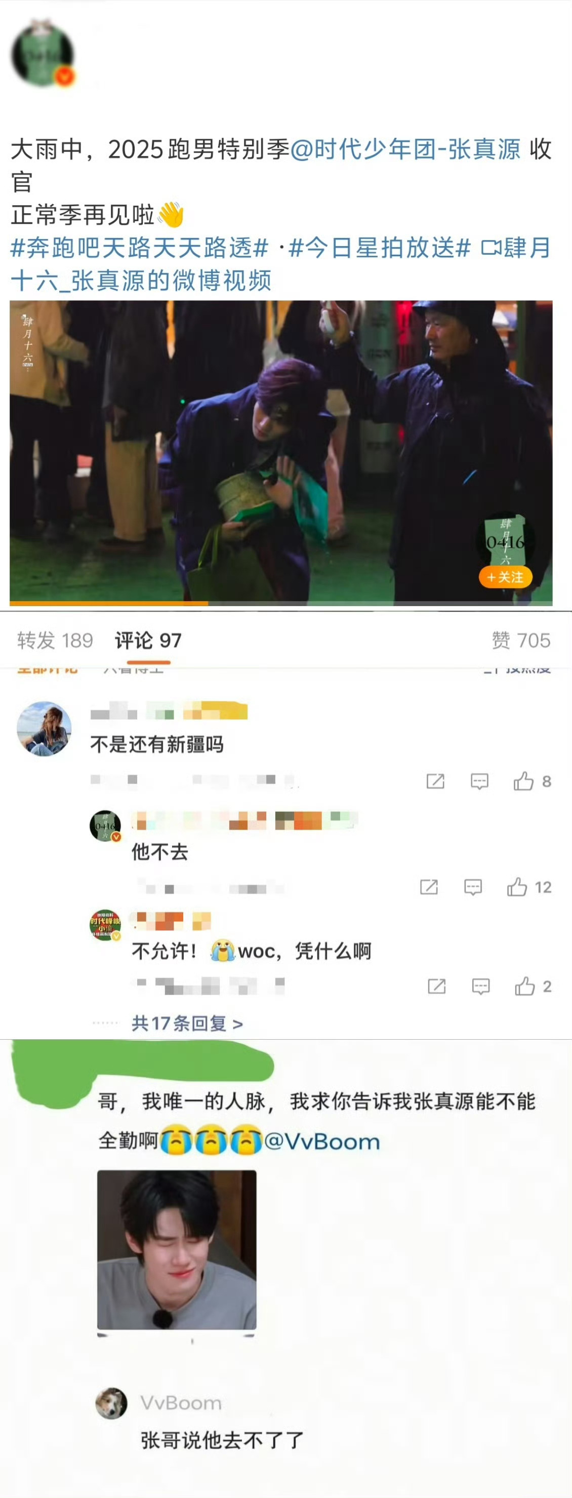 张真源将缺席跑男新疆录制奔跑吧张哥下轮新疆录制不去了?真的吗!和团体行程撞档期了,目前还在等明确回应,希望早点知道结果啊。