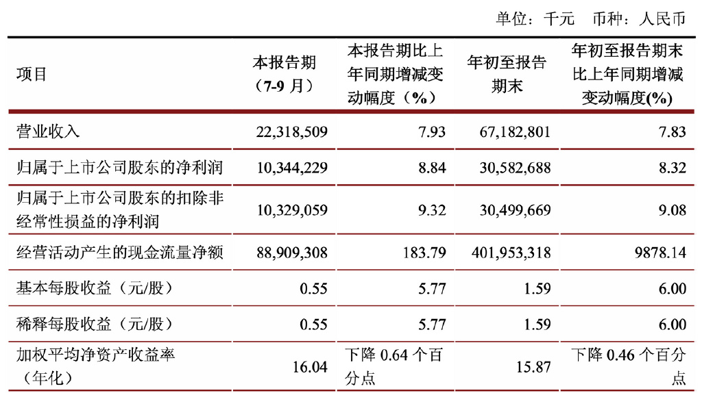 从单季度表现看,江苏银行第三季度实现营业收入223.19亿元,同比增长7.93%,实现归净利润103.44亿元,同比增长8.84%。