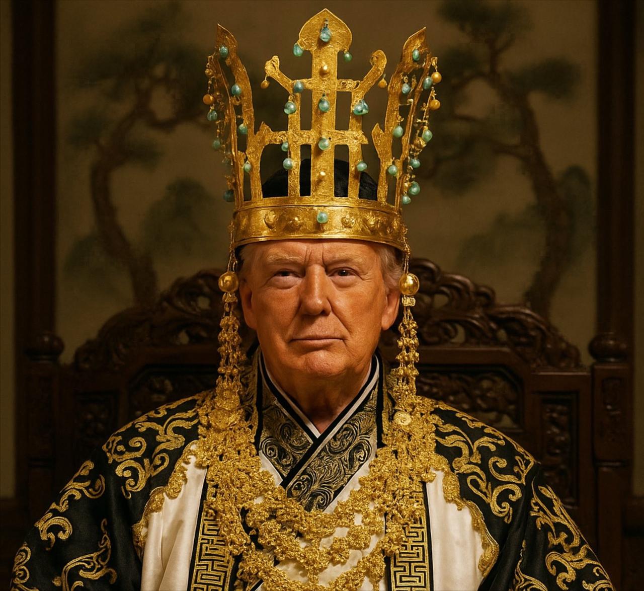 韩国人把特朗普坑惨了。现在美国人制作了特朗普戴上韩国王冠的样子。特朗普戴上韩国王