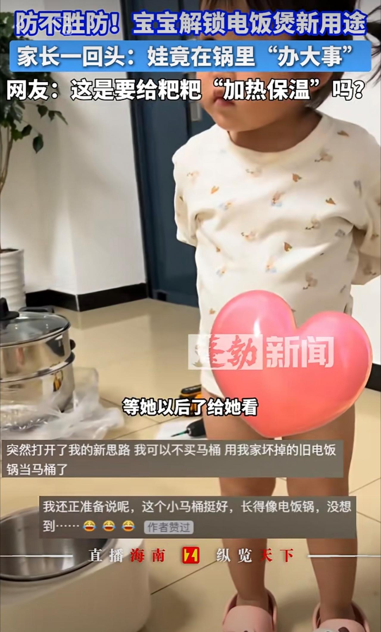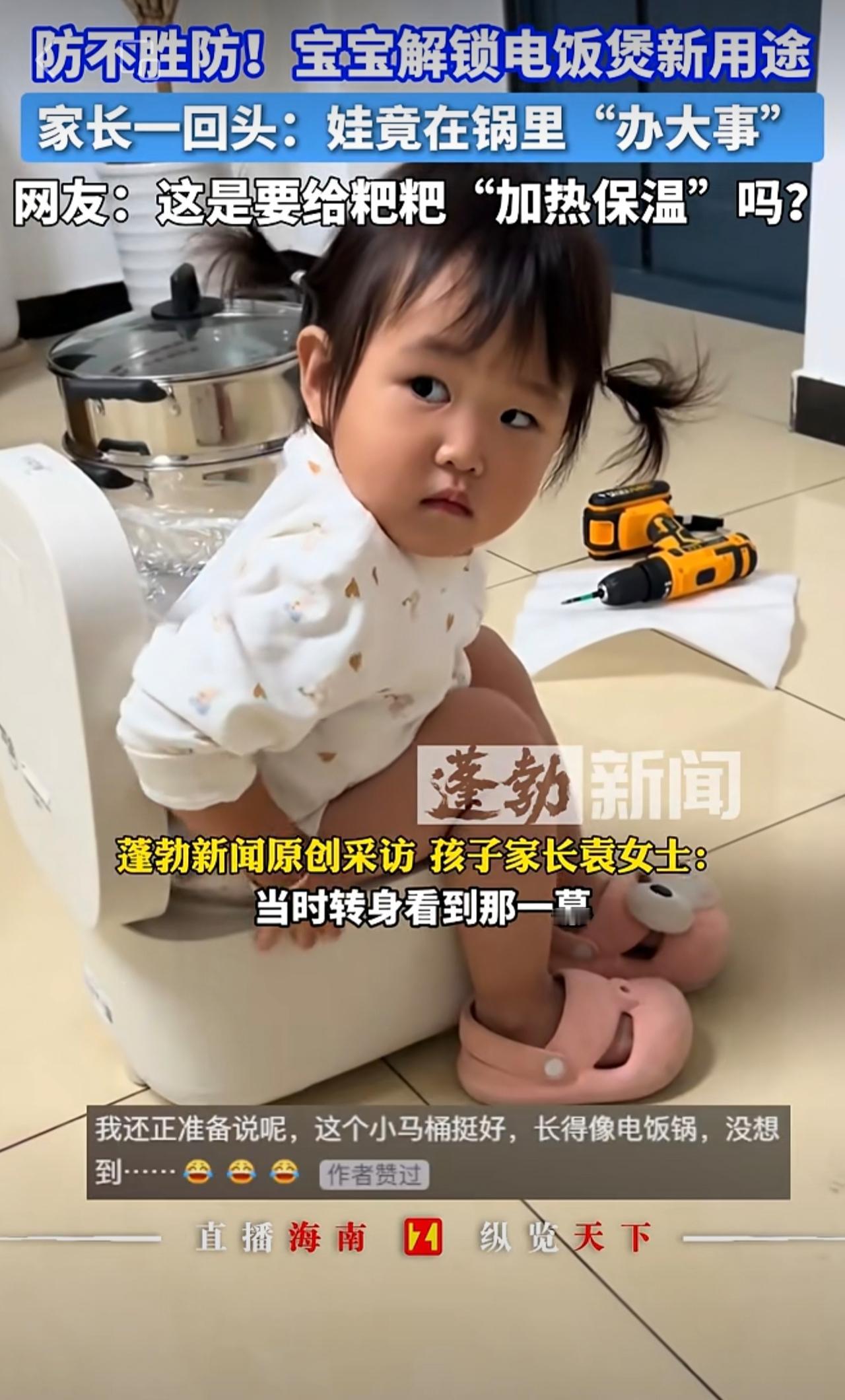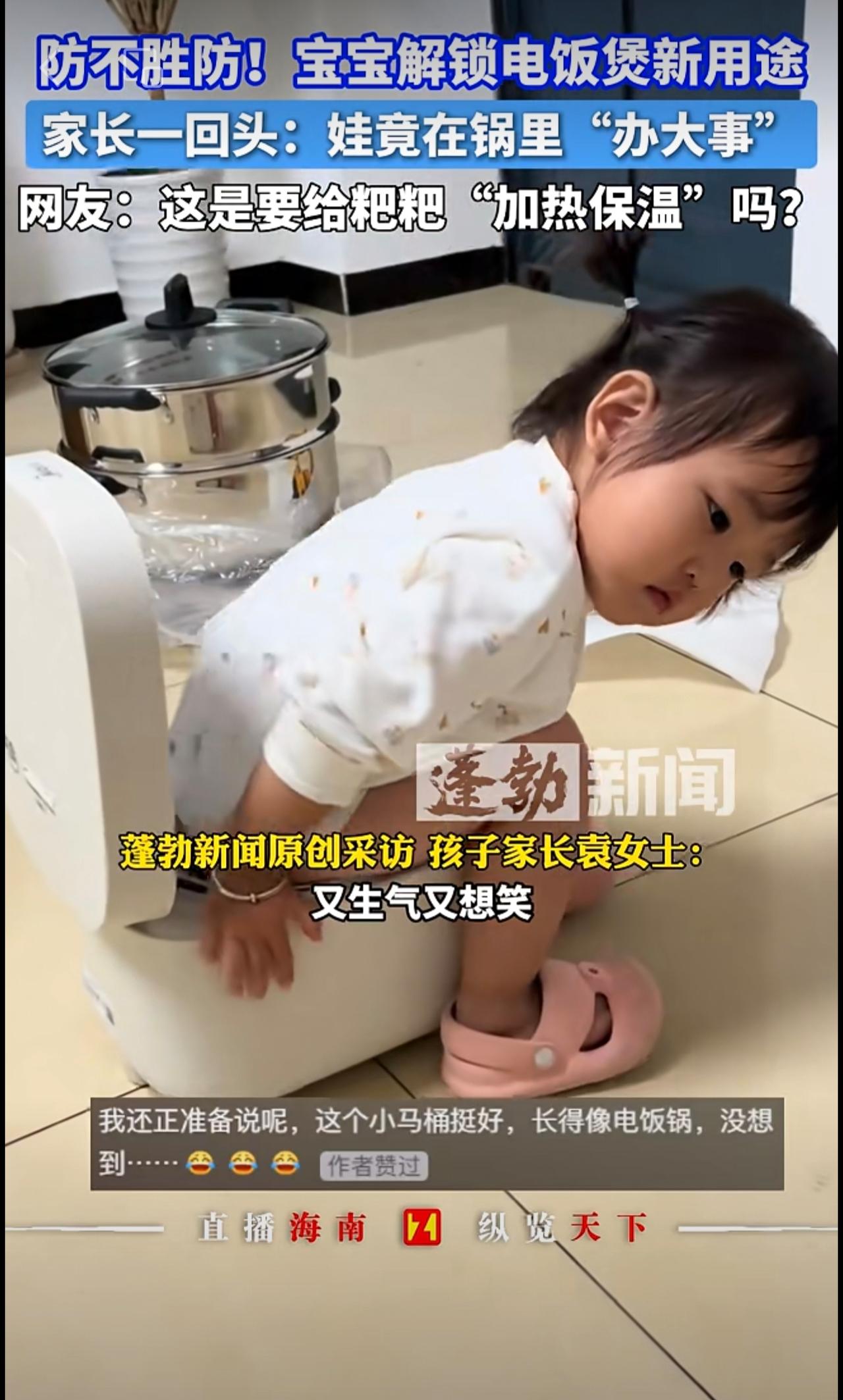 防不胜防!宝宝解锁电饭煲新用途,家长一回头:娃竟在锅里“办大事”,网友:这是要给